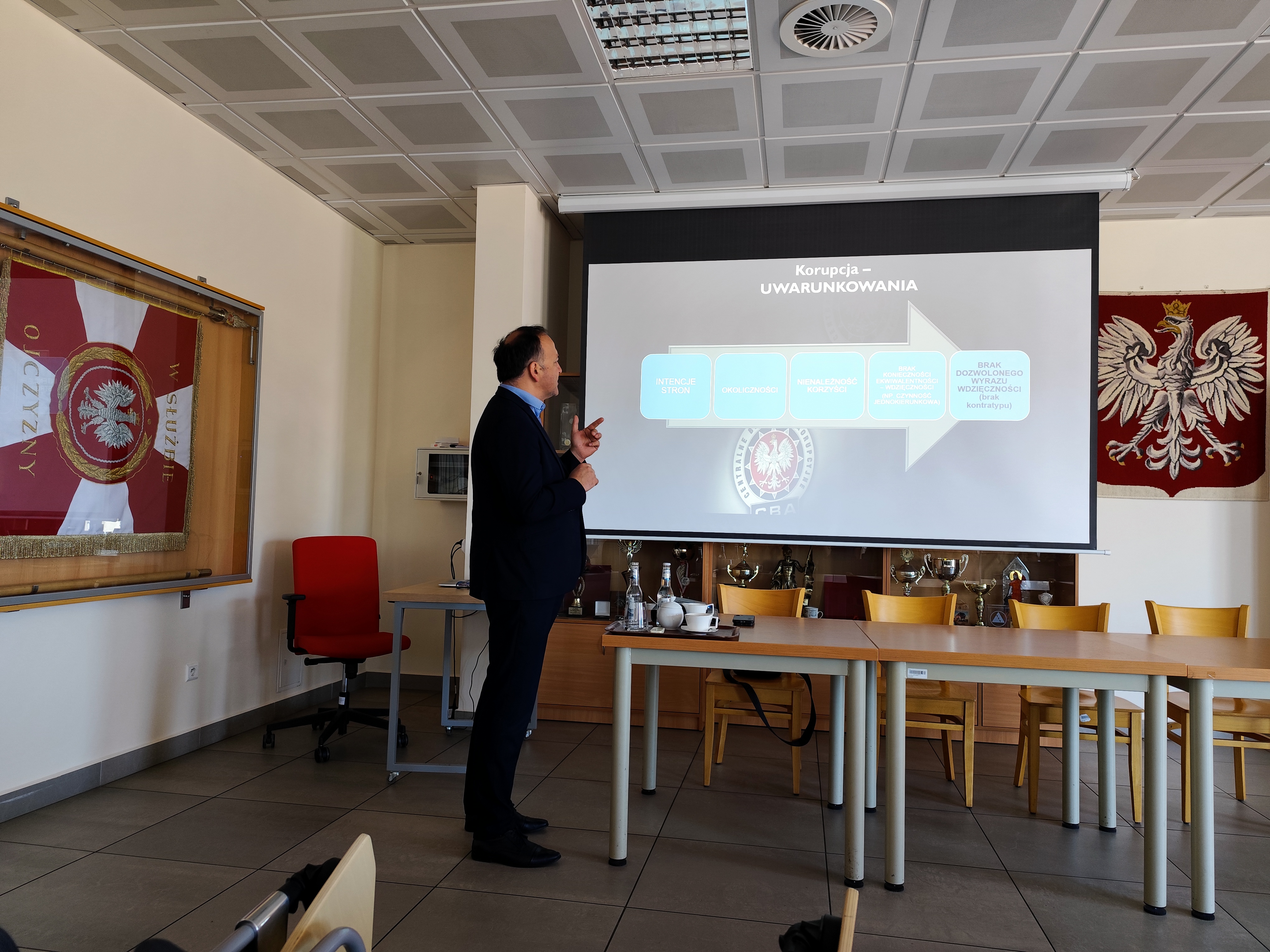 Szkolenie poprowadził Pan Grzegorz Jurek — Dyrektor Delegatury CBA w Katowicach. Spotkanie miało na celu podniesienie świadomości w zakresie przeciwdziałania korupcji, kształtowania właściwych postaw etycznych oraz zapoznanie uczestników z mechanizmami wykrywania i zgłaszania nieprawidłowości.