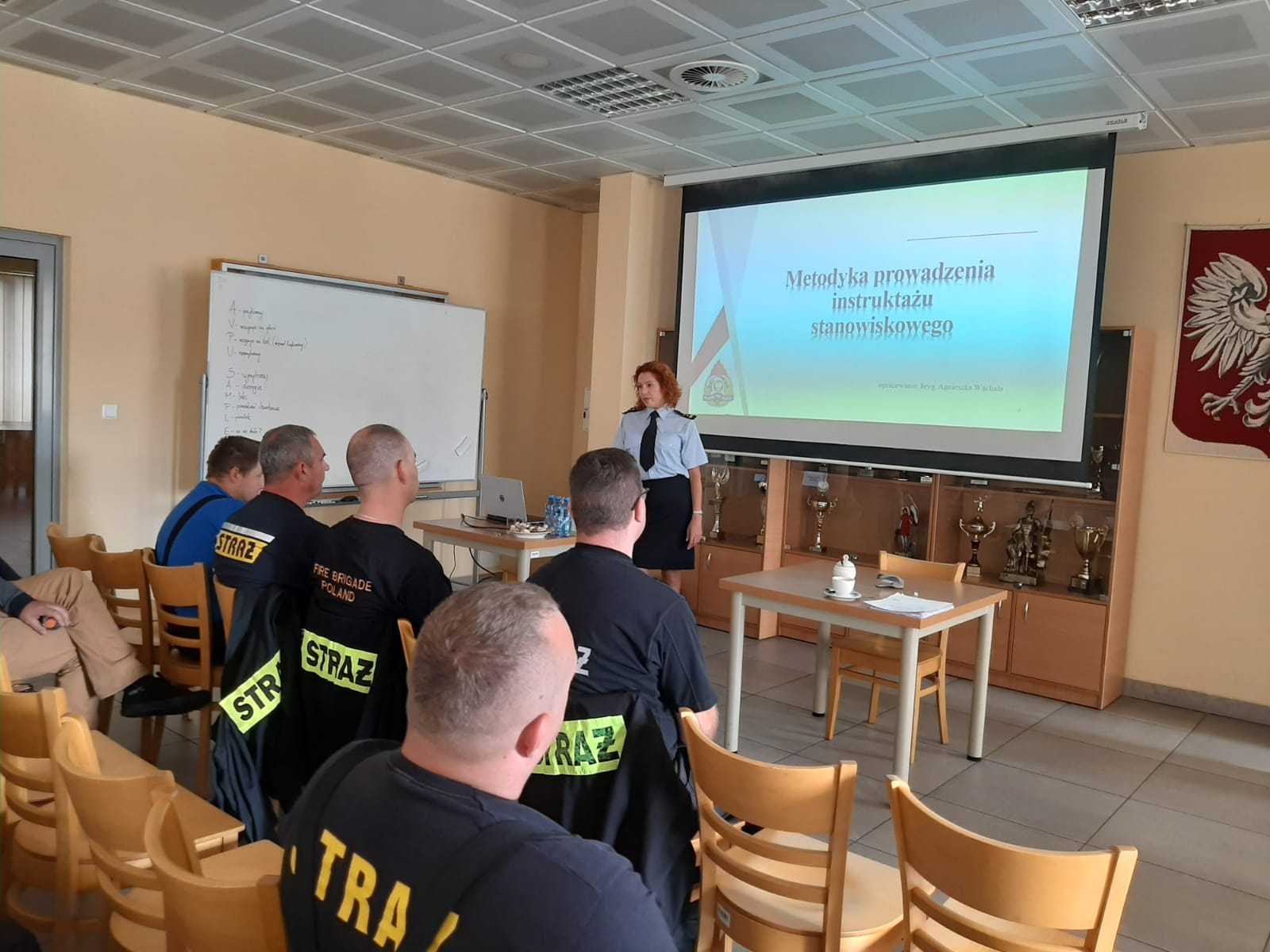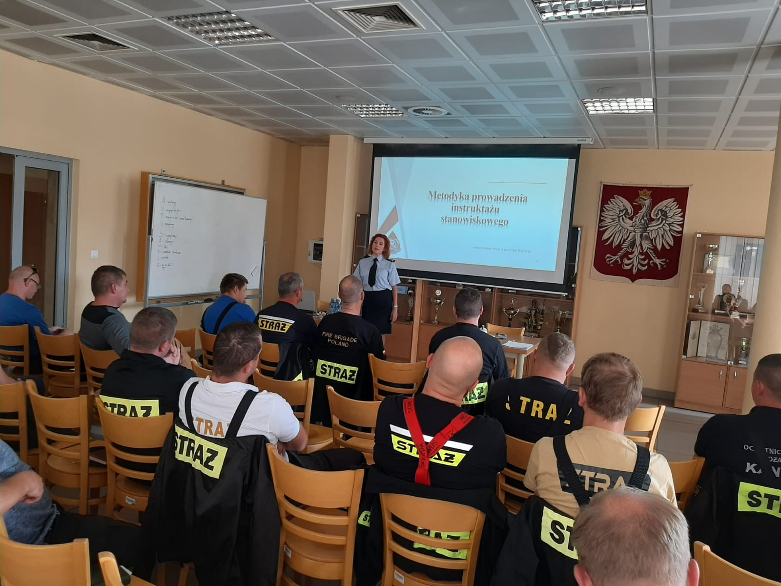 W trakcie zajęć omówione zostały kwestie bezpieczeństwa strażaków podczas działań ratowniczo-gaśniczych oraz metodyka przeprowadzania szkoleń w zakresie BHP.