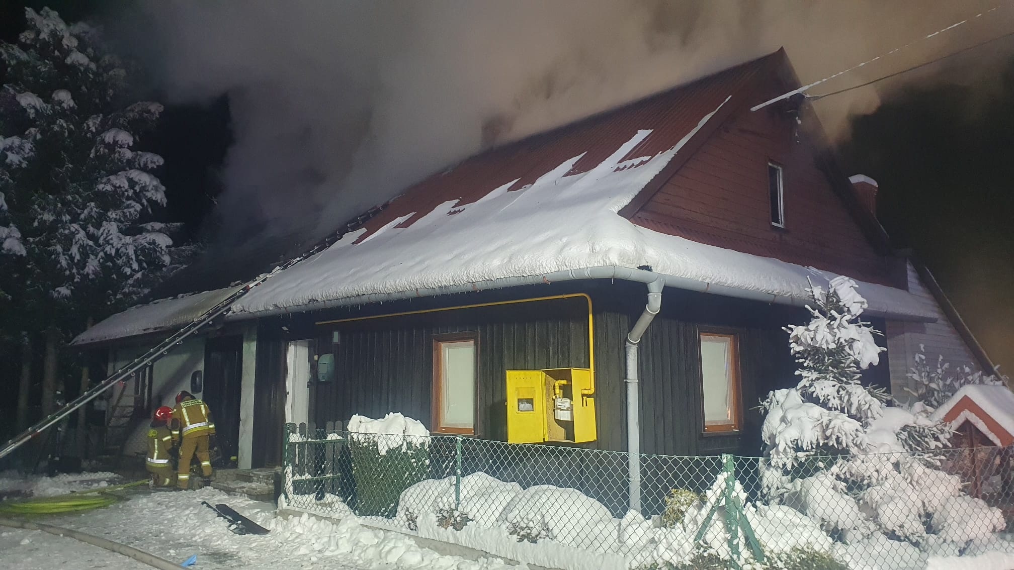 O godzinie 00:34 Stanowisko Kierowania Komendanta Miejskiego PSP w Bielsku-Białej przyjęło zgłoszenie od Wojewódzkiego Centrum Powiadamiania Ratunkowego. Z informacji wynikało, że pali się dach parterowego domu bliźniaczego, a lokatorzy prawdopodobnie znajdują się w środku.