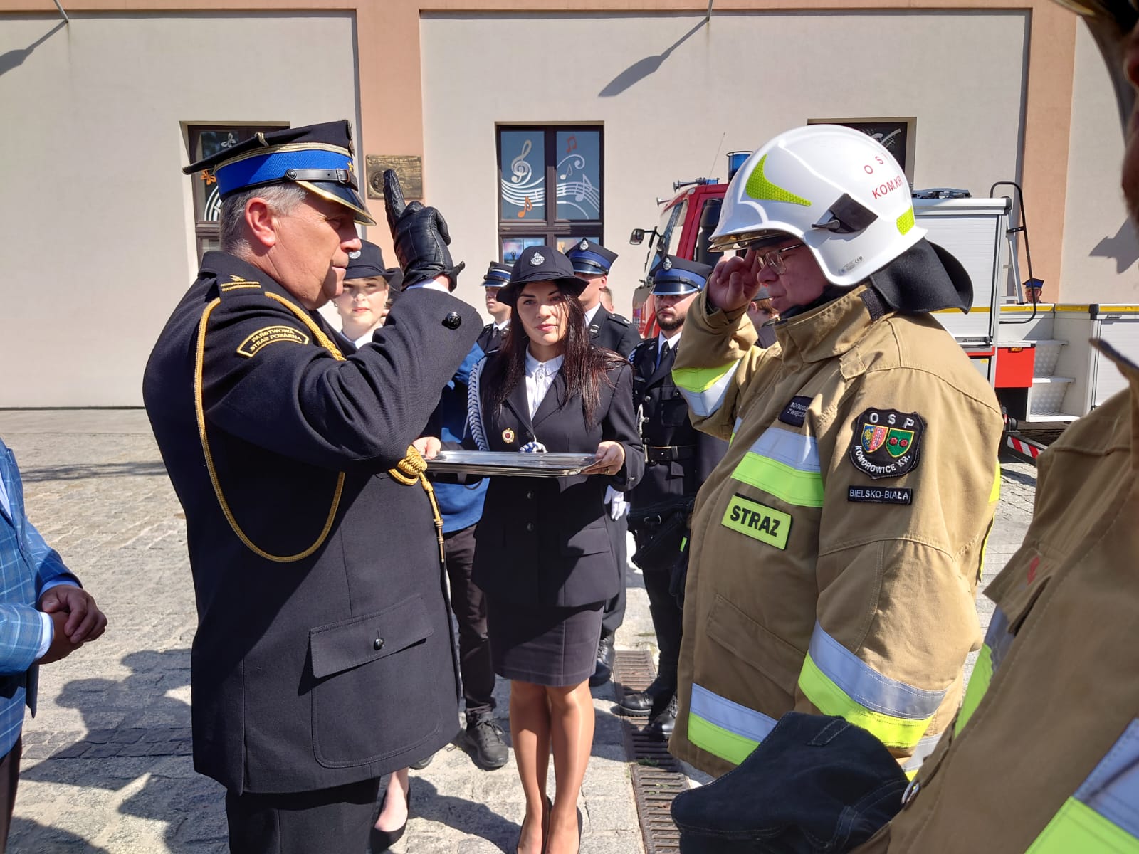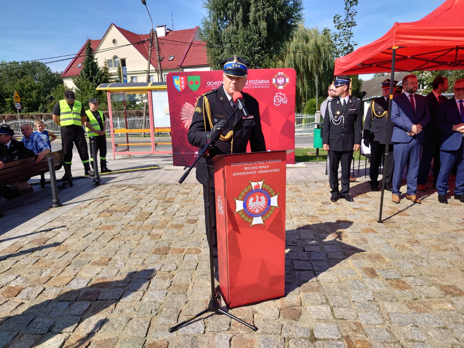 Uroczysta zbiórka odbyła się w Bielsku-Białej na placu Józefa Niemczyka. Dowódca uroczystości złożył meldunek Zastępcy Śląskiego Komendanta Wojewódzkiego PSP st. bryg. Rafałowi Świerczek. Wszystkich przybyłych gości przywitał dh Michał Gocek – Prezes Ochotniczej Straży Pożarnej w Bielsku-Białej Komorowice Krakowskie. Następnie odczytano krótki rys historyczny jednostki.