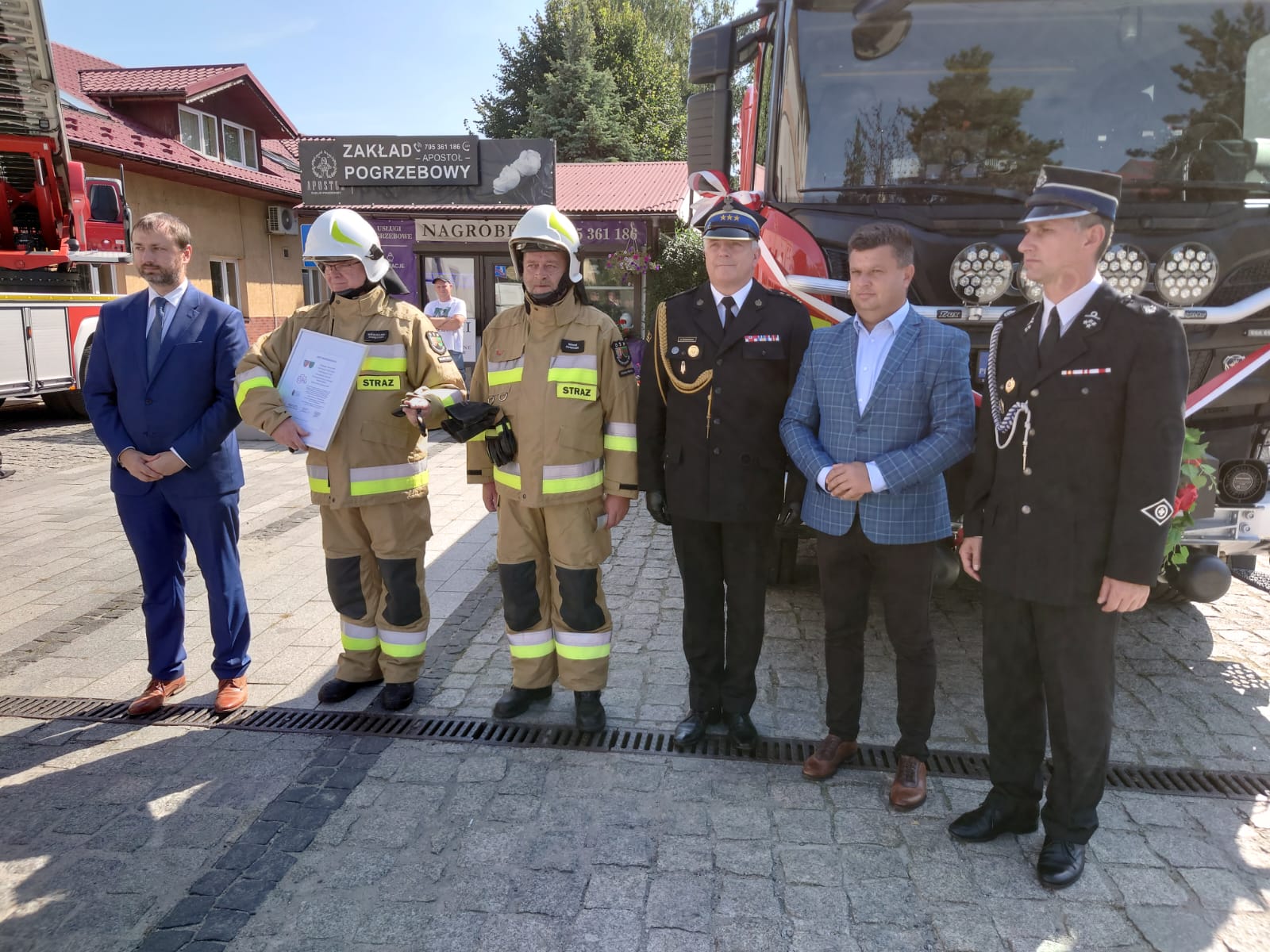 W następnym punkcie uroczystości nastąpiło przekazanie i poświęcenie ciężkiego samochodu ratowniczo-gaśniczego GCBA SCANIA, zakupionego za kwotę 1 299 987 zł. Zakup został sfinansowany ze środków: