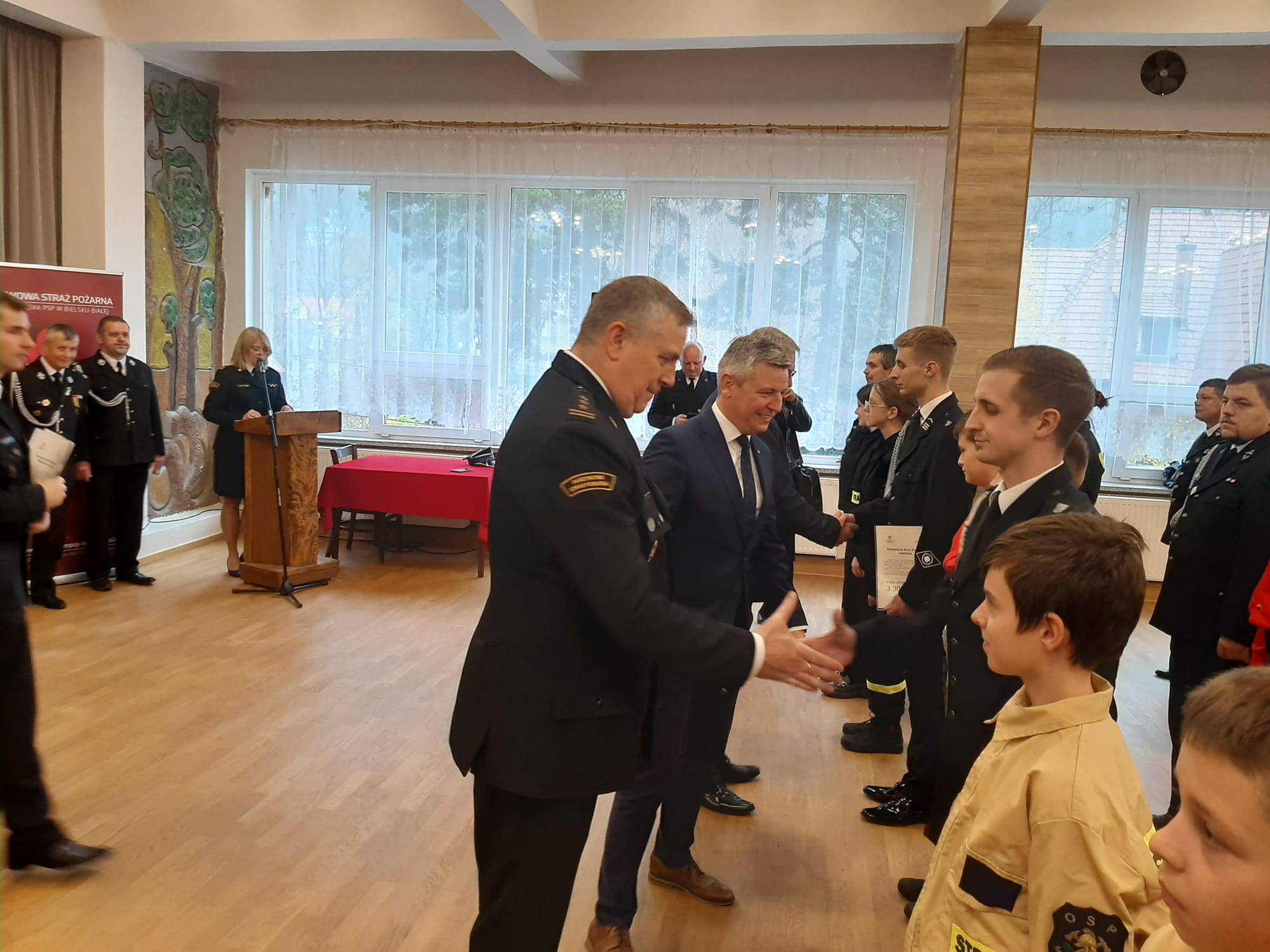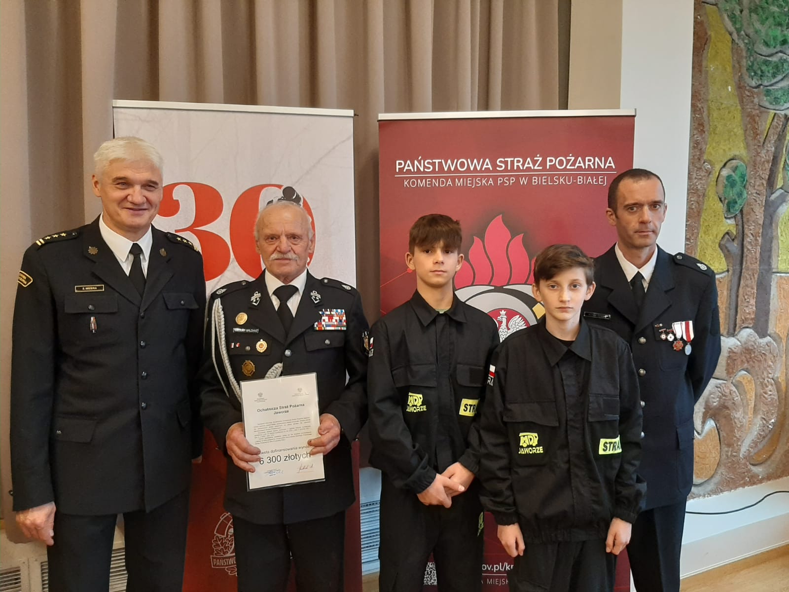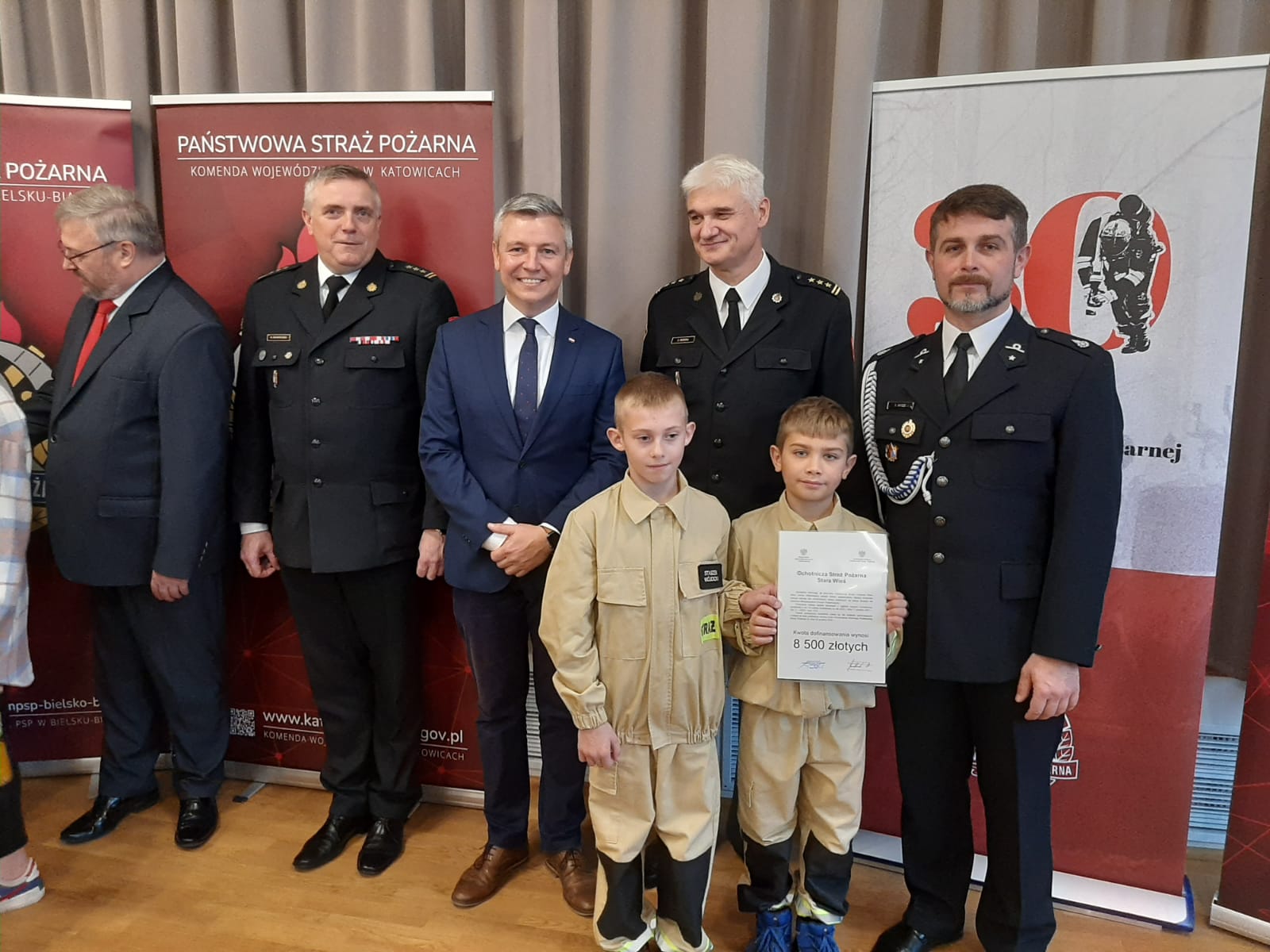 Uroczystość wręczenia promes dotacji celowej dla Ochotniczych Straży Pożarnych na zakup sprzętu dla członków Młodzieżowych Drużyn Pożarniczych z terenu Bielska-Białej i powiatu bielskiego