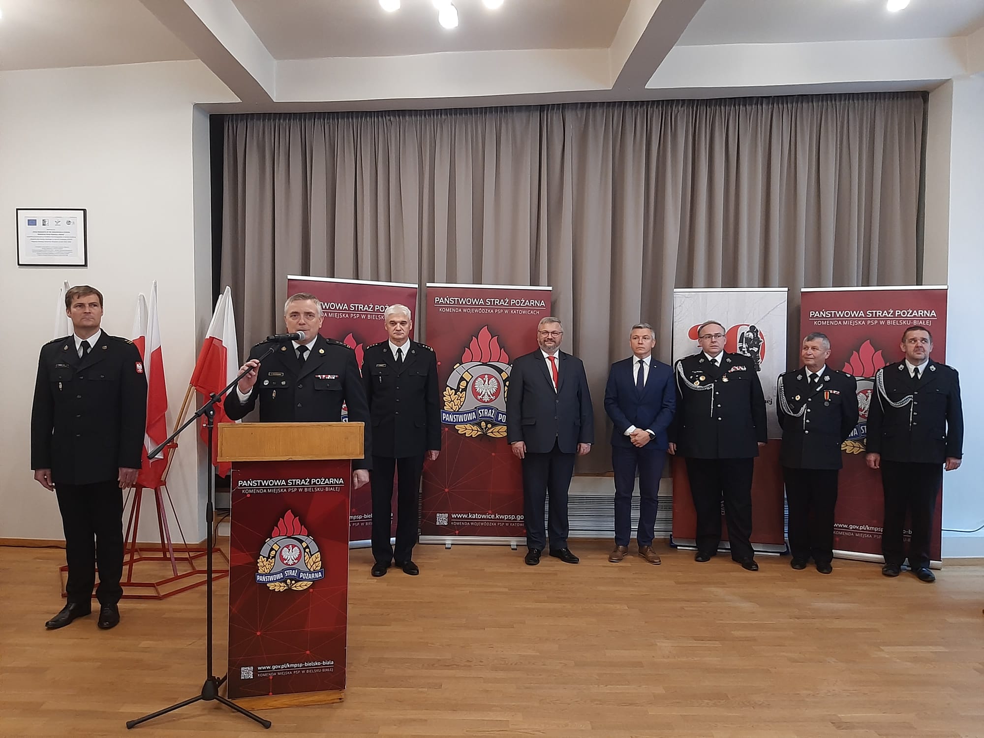 W wydarzeniu udział wzięli m.in. Pan Przemysław Drabek - Poseł na Sejm RP, Pan Grzegorz Gaża - Poseł na Sejm RP, Pan st. bryg. Rafał Świerczek - Zastępca Śląskiego Komendanta Wojewódzkiego PSP, Pan st. bryg. Zbigniew Mizera – Komendant Miejski PSP w Bielsku-Białej, a także przedstawiciele władz samorządowych oraz jednostek ochotniczych straży pożarnych odbierających promesy.