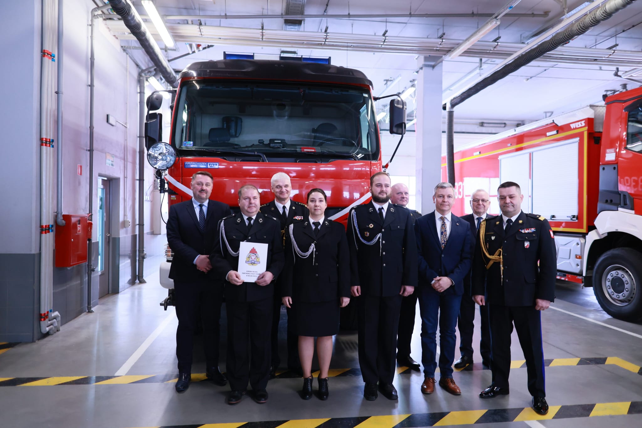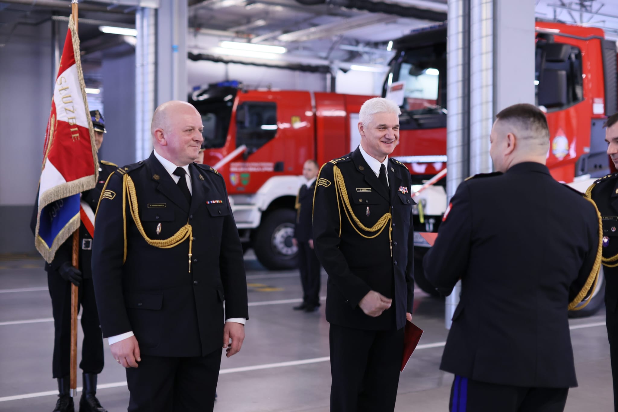W dalszej części uroczystości miało miejsce wręczenie aktów oraz kluczyków do samochodów pożarniczych przekazywanych do jednostki ratowniczo-gaśniczej PSP nr 1 w Bielsku-Białej oraz Ochotniczej Straży Pożarnej w Bielsko-Biała Lipnik.