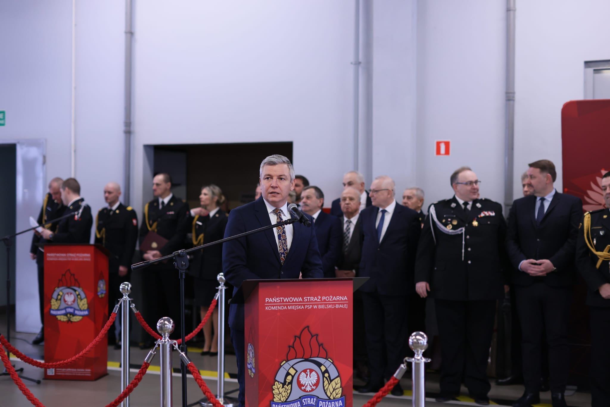 Śląski Komendant Wojewódzki Państwowej Straży Pożarnej nadbryg. Jacek Kleszczewski w swoim przemówieniu podziękował dotychczasowemu komendantowi st. bryg. Zbigniewowi Mizerze za pełną oddania służbę, a nowemu życzył samych sukcesów w dalszym rozwoju bielskiego pożarnictwa.