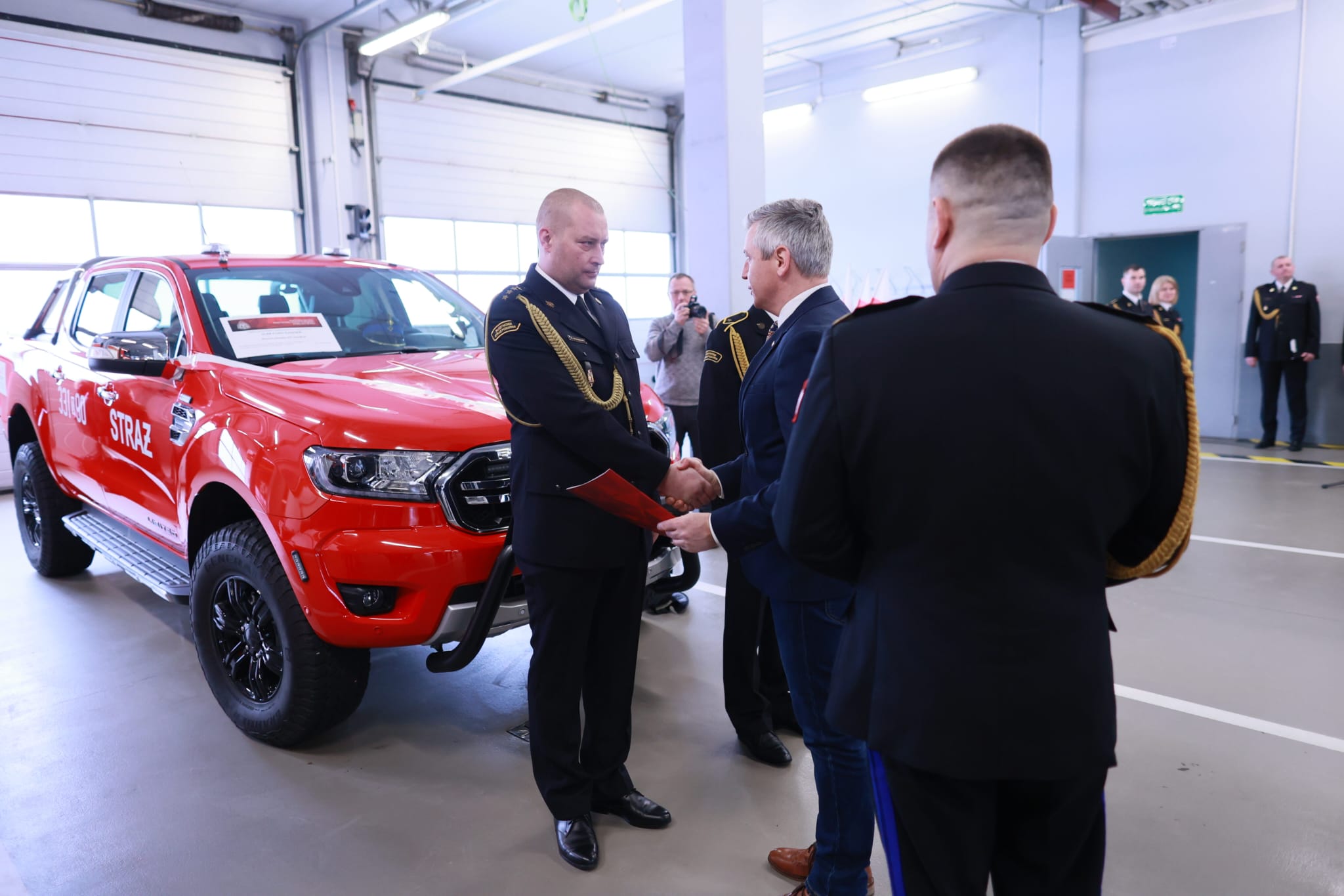 Kolejnym nabytkiem jest lekki samochód specjalny rozpoznawczo-ratowniczy Ford Ranger o wartości 337 266 zł. Którego zakup był możliwy w ramach projektu „Usprawnienie systemu ratownictwa na drogach – etap V”. Pojazd z napędem 4x4, pozwala realizować działania ratownicze praktycznie w każdych warunkach terenowych i pogodowych. Dodatkowo na wyposażeniu samochodu znalazły się urządzenia łączności oraz sprzęt wspomagający kierującego działaniami .