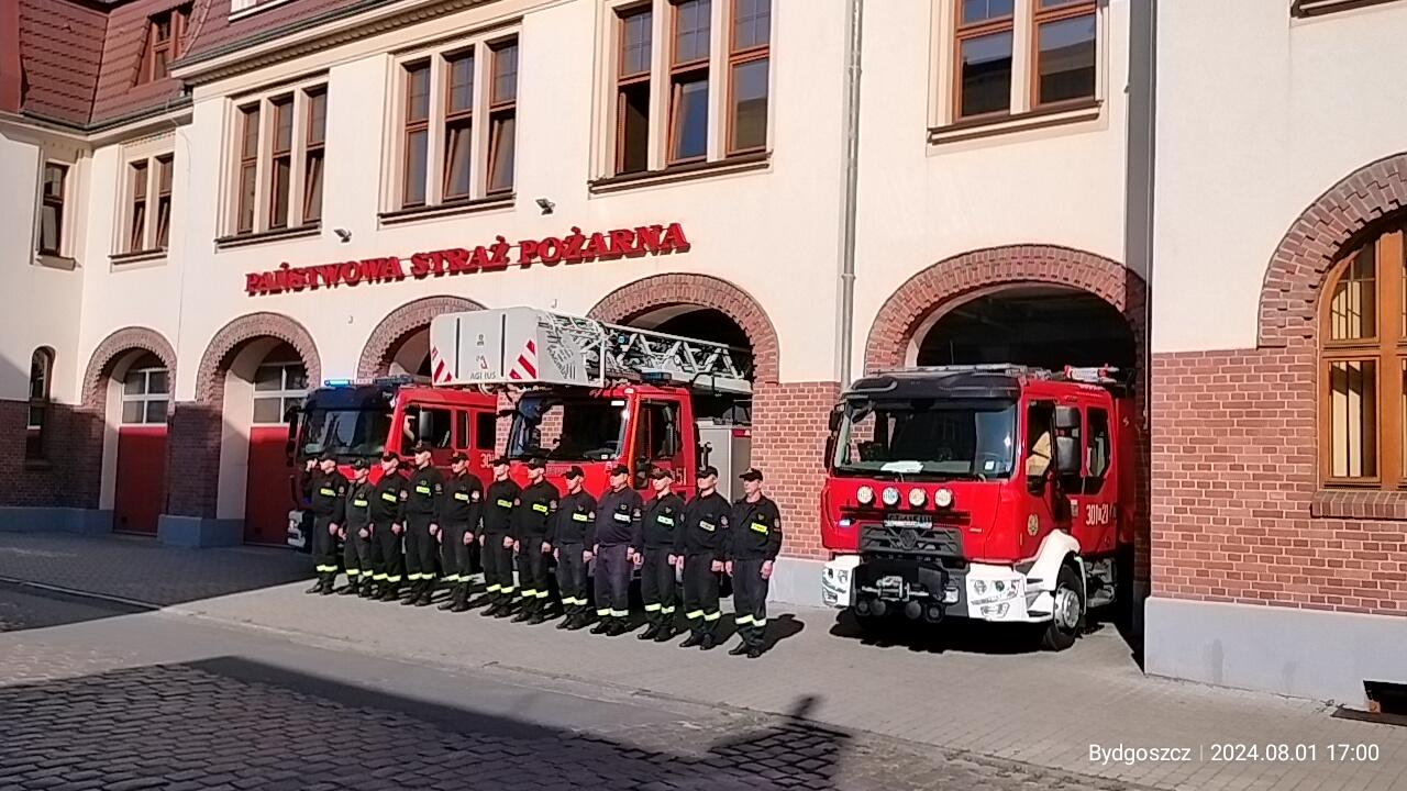 Punktualnie o godzinie 17:00 we wszystkich Jednostkach Ratowniczo-Gaśniczych Komendy Miejskiej Państwowej Straży Pożarnej w Bydgoszczy odbyły się zbiórki dla upamiętnienia "godziny W" - rozpoczęcia Powstania Warszawskiego. W trakcie dwumiesięcznych walk straty wojsk polskich wyniosły około 16 tysięcy zabitych i zaginionych, 20 tysięcy rannych i 15 tysięcy wziętych do niewoli. Oprócz wojskowych, zginęło około 200 tysięcy cywilnych mieszkańców stolicy. Powstanie Warszawskie uznawane jest za jedno z najważniejszych wydarzeń w najnowszej historii Polski.