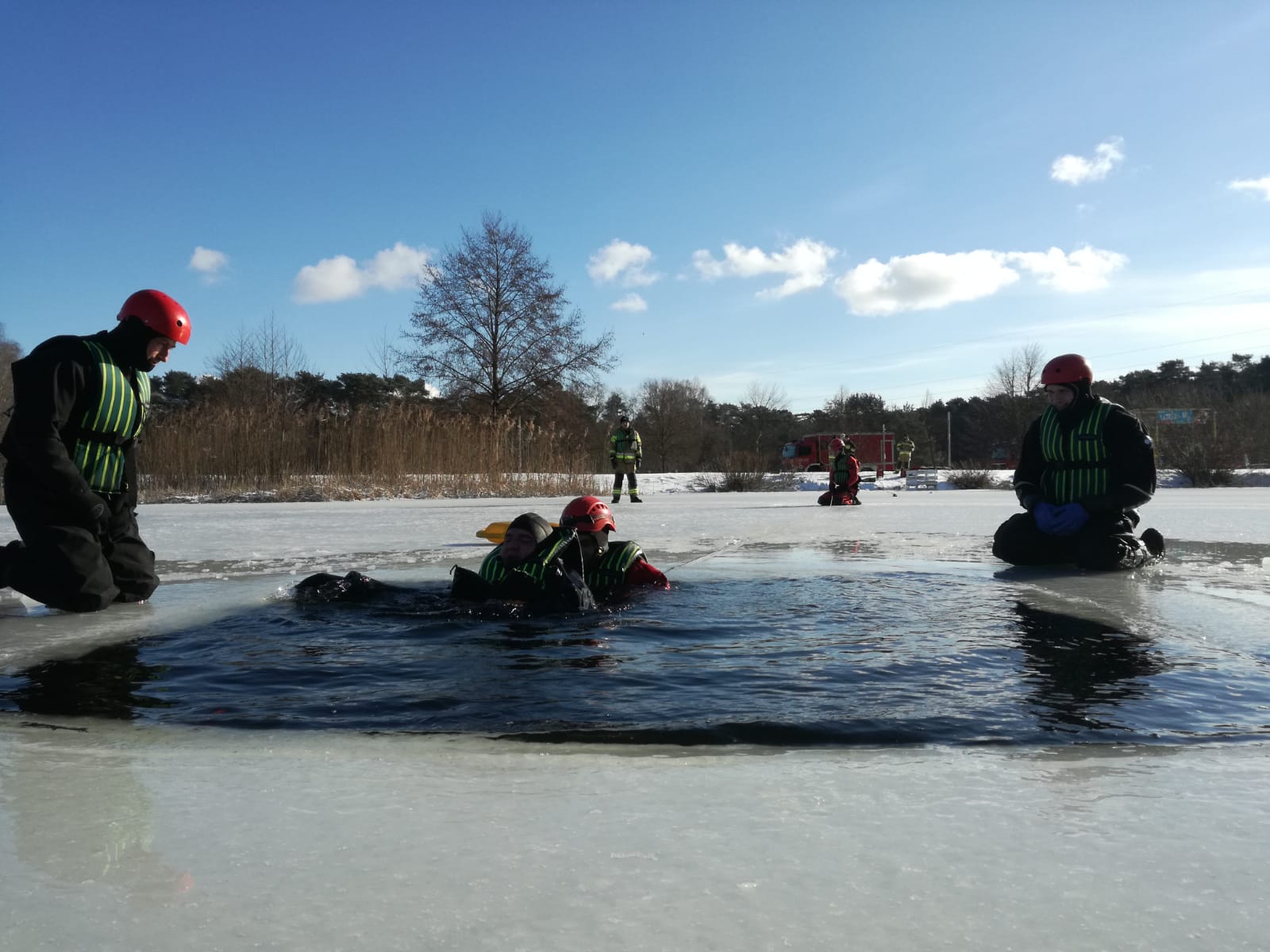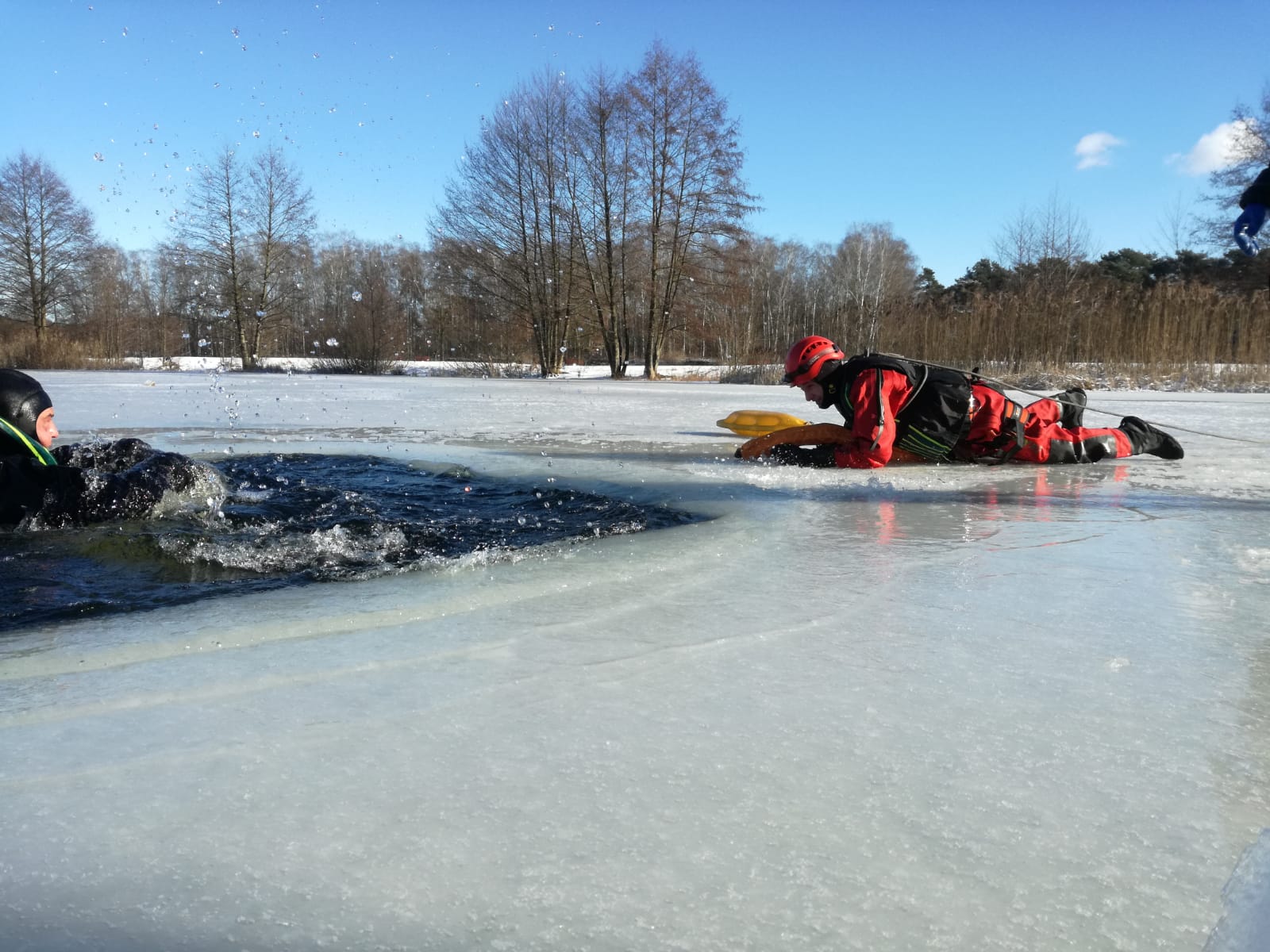 Dnia 05 lutego 2021 roku na zamarzniętym zbiorniku wodnym na terenie Leśnego Parku Kultury i Wypoczynku Myślęcinek w Bydgoszczy, odbyły się ćwiczenia z zakresu ratownictwa na lodzie. Celem ćwiczeń było doskonalenie zasad pracy w ubraniach wypornościowych, techniki ewakuacji poszkodowanego z przerębla, umiejętności posługiwania się sprzętem do ratownictwa wodnego i lodowego, umiejętności ewakuowania osoby poszkodowanej poza lód, oraz poruszanie się po lodzie przy użyciu podstawowego sprzętu do ratownictwa lodowego. W ćwiczeniach udział wzięli strażacy z Jednostek Ratowniczo-Gaśniczych nr 1 i 3 w Bydgoszczy.