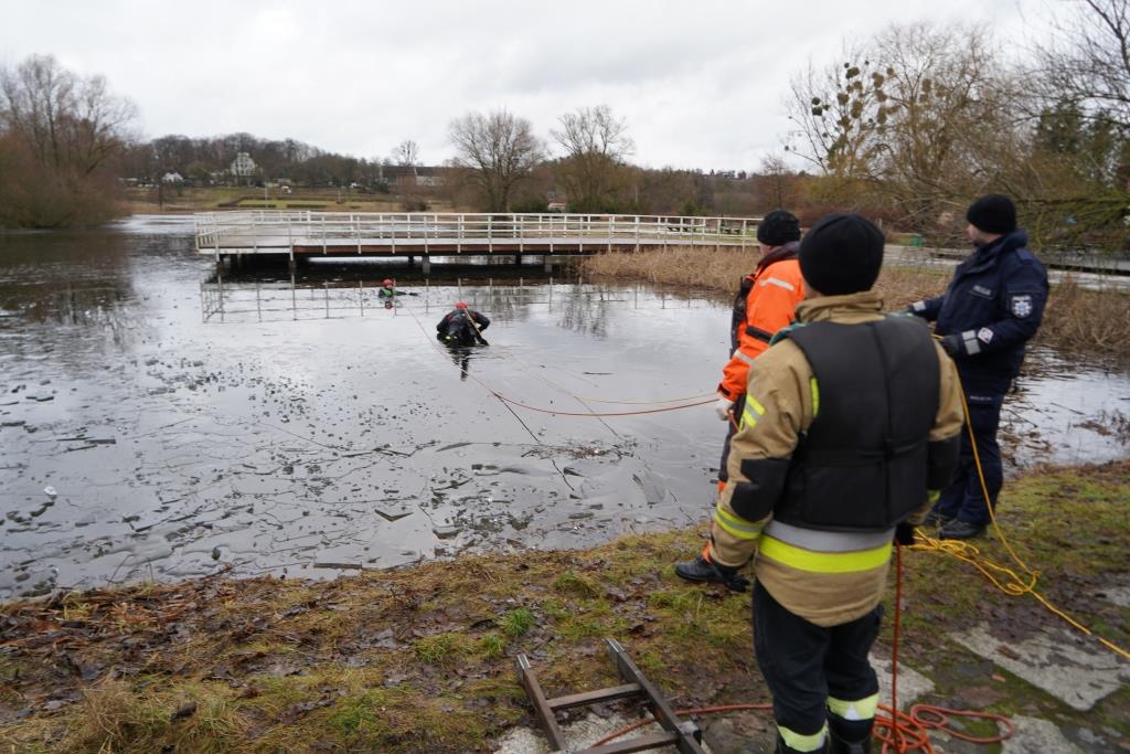 14 stycznia 2022 roku przeprowadzone zostały wspólne ćwiczenia Specjalistycznej Grupy Ratownictwa Wodno-Nurkowego i Ogniwa Prewencji na Wodach i Terenach Przywodnych Komendy Miejskiej Policji w Bydgoszczy. Tematyką ćwiczeń było ratownictwo na zamarzniętych akwenach. Strażacy wraz z Policjantami sprawdzili różne formy działań doskonaląc jednocześnie swoje umiejętności. Do działań wykorzystano między innymi katamaran ratowniczy, rzutki ratunkowe, kołowrotki ratownicze oraz sprzęt, który może być dostępny na miejscu zdarzenia tj. drabiny, sanki lub inne przedmioty, które unoszą się na wodzie i mogą służyć do uratowania osoby. Poniżej relacja zdjęciowa oraz film ze wspólnych ćwiczeń.