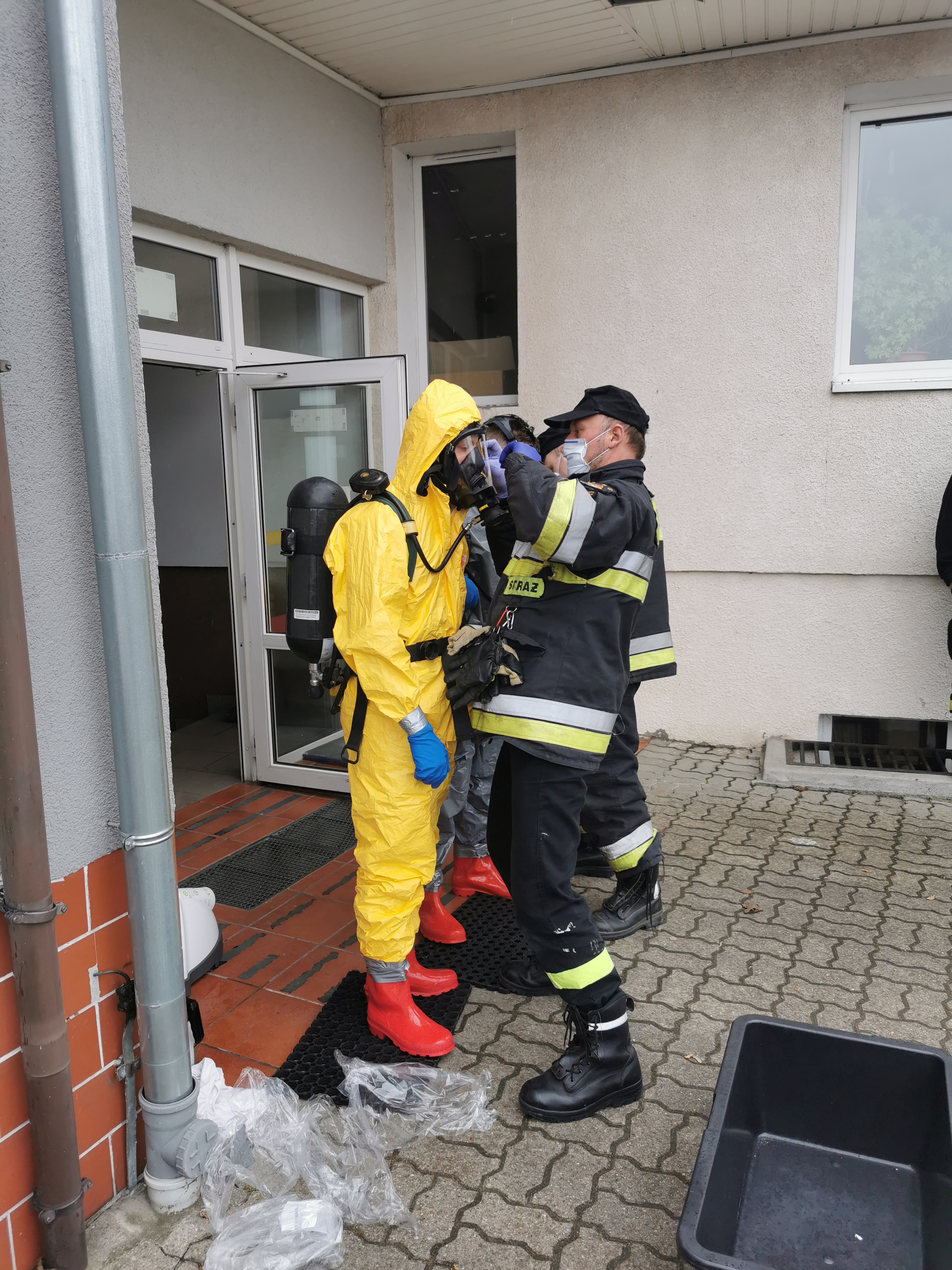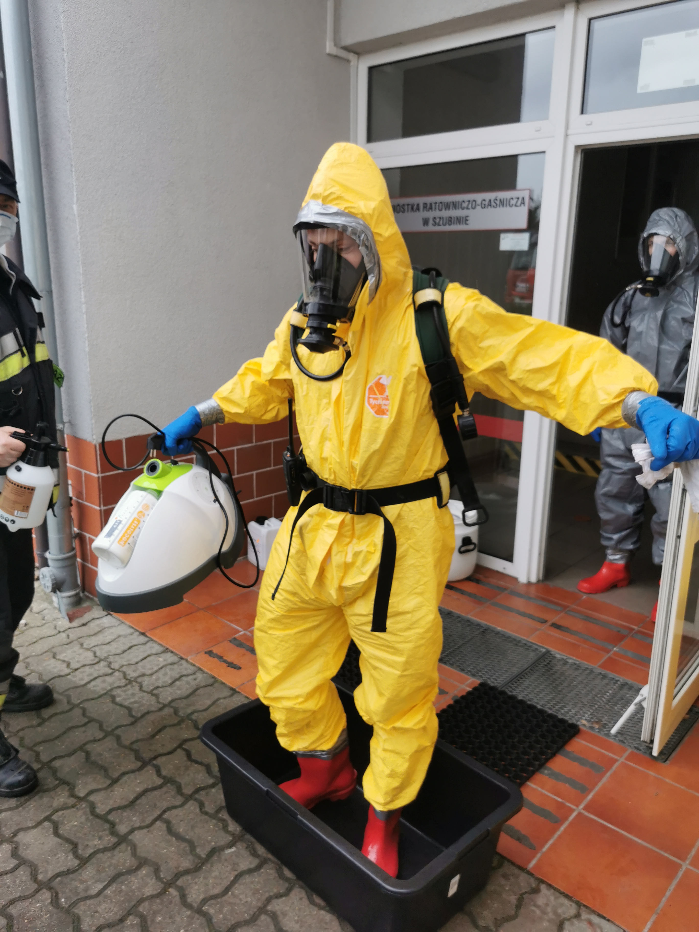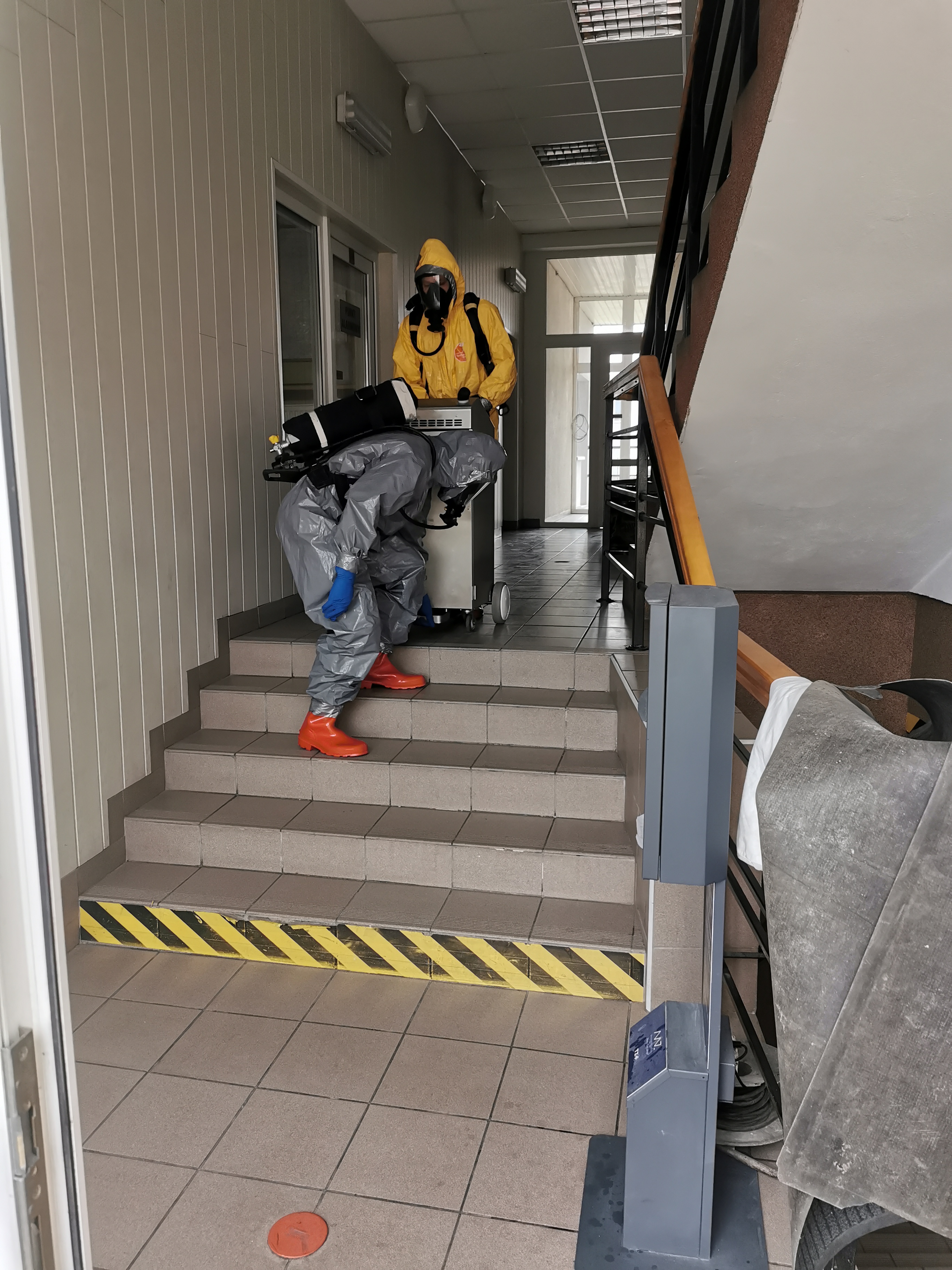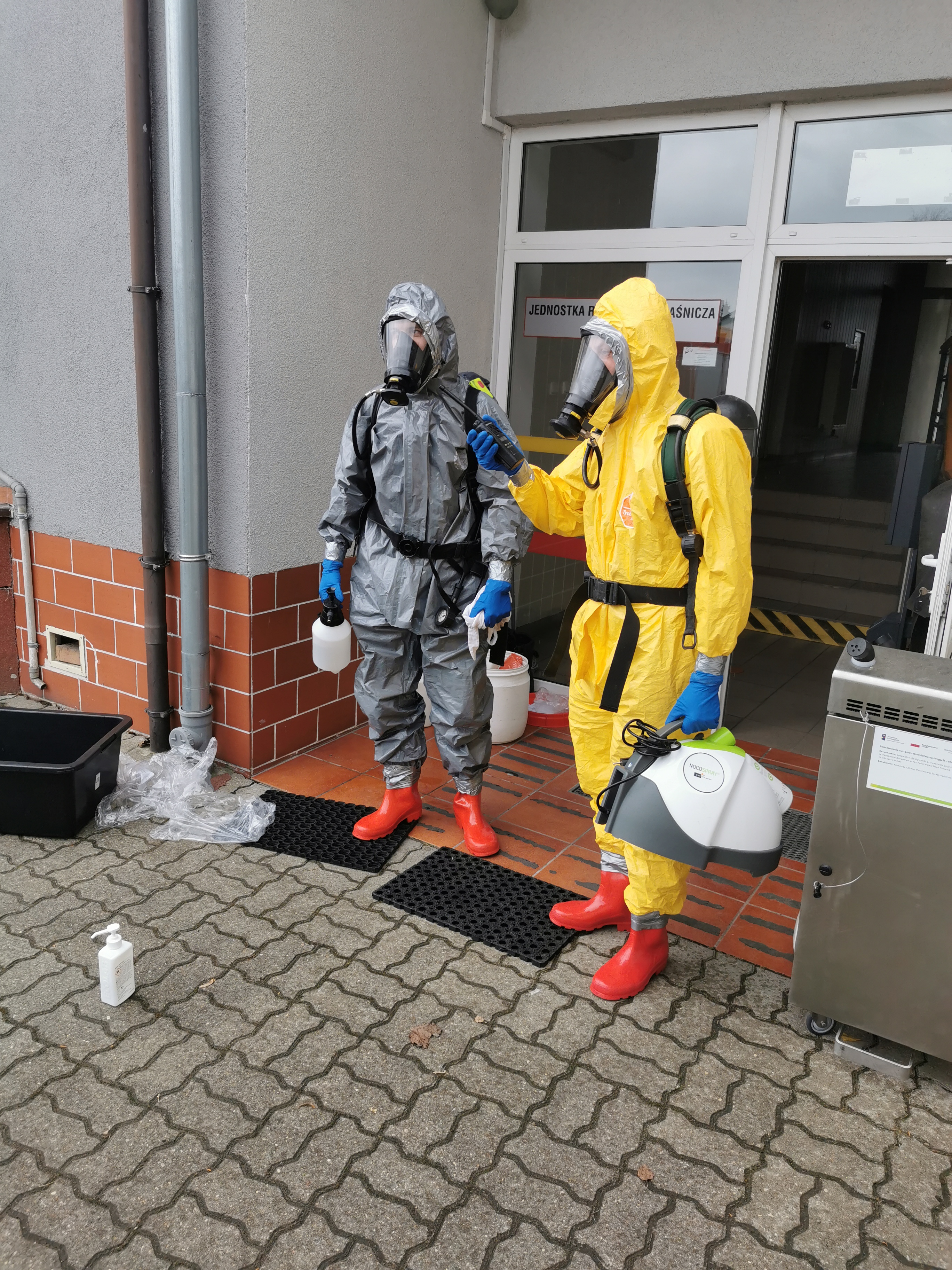 W dniu 13.03.2021 Specjalistyczna Grupa Ratownictwa Chemicznego i Ekologicznego Bydgoszcz została zadysponowana do fumigacji punktu alarmowego JRG2 w Szubinie. Miało to miejsce po tym jak u jednego z funkcjonariuszy pełniącego służbę w PA wykryto zakażenie koronawirusem Sars-Cov-2. Działania grupy polegały na wykonaniu fumigacji pomieszczeń o łącznej kubaturze 1250m3 urządzeniami NOCO Spray oraz NOCOMAX INOX. Dodatkowo część pomieszczeń została poddana dokładnej dezynfekcji środkiem Bioseptol poprzez manualne ścieranie powierzchni i sprzętu. Strażacy pracowali w sprzęcie ochrony indywidualnej (ubrania klasy III – typ 3b i 5b), rękawicach nitrylowych, obuwiu chemoodpornym oraz aparatach ochrony układu oddechowego. Po zakończeniu działań przeprowadzono dekontaminację wstępną ratowników i sprzętu użytego podczas działań z jednoczesnym podziałem na przeznaczony do utylizacji i do dalszego użytkowania po przeprowadzeniu dekontaminacji właściwej. Przewidziany do dalszego użytkowania sprzęt został powtórnie poddany dezynfekcji, a przeznaczony do utylizacji zabezpieczono poprzez podwójne zapakowanie w czerwonych workach i sztywno-ściennym pojemniku.