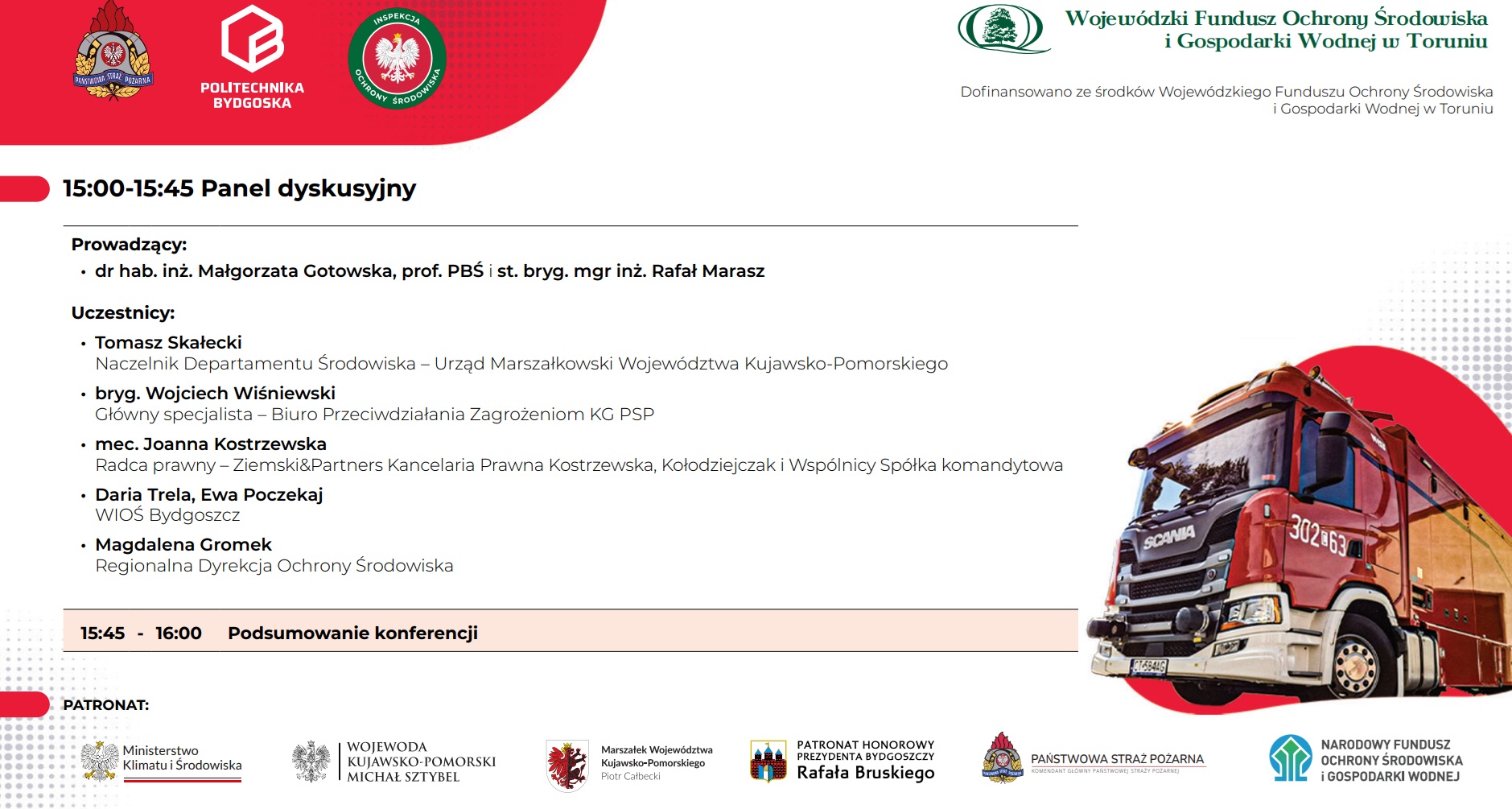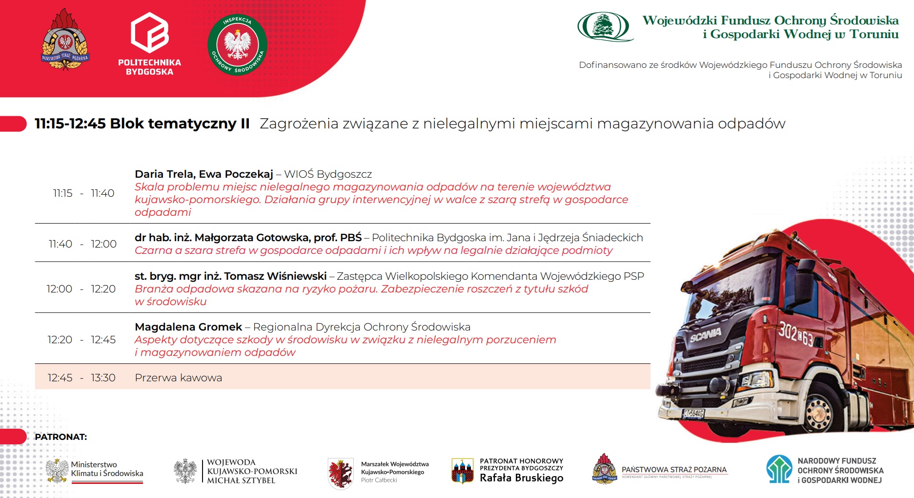 Politechnika Bydgoska im. Jana i Jędrzeja Śniadeckich, Komenda Wojewódzka Państwowej Straży Pożarnej w Toruniu oraz Wojewódzki Inspektorat Ochrony Środowiska w Bydgoszczy zapraszają na konferencję „Nielegalne miejsca magazynowania odpadów – regulacje, zagrożenia, przyszłość”, która odbędzie się 27 listopada 2025 roku w godzinach 9:00-16:00 w Auditorium Novum Politechniki Bydgoskiej przy Al. prof. S. Kaliskiego 7 w Bydgoszczy.