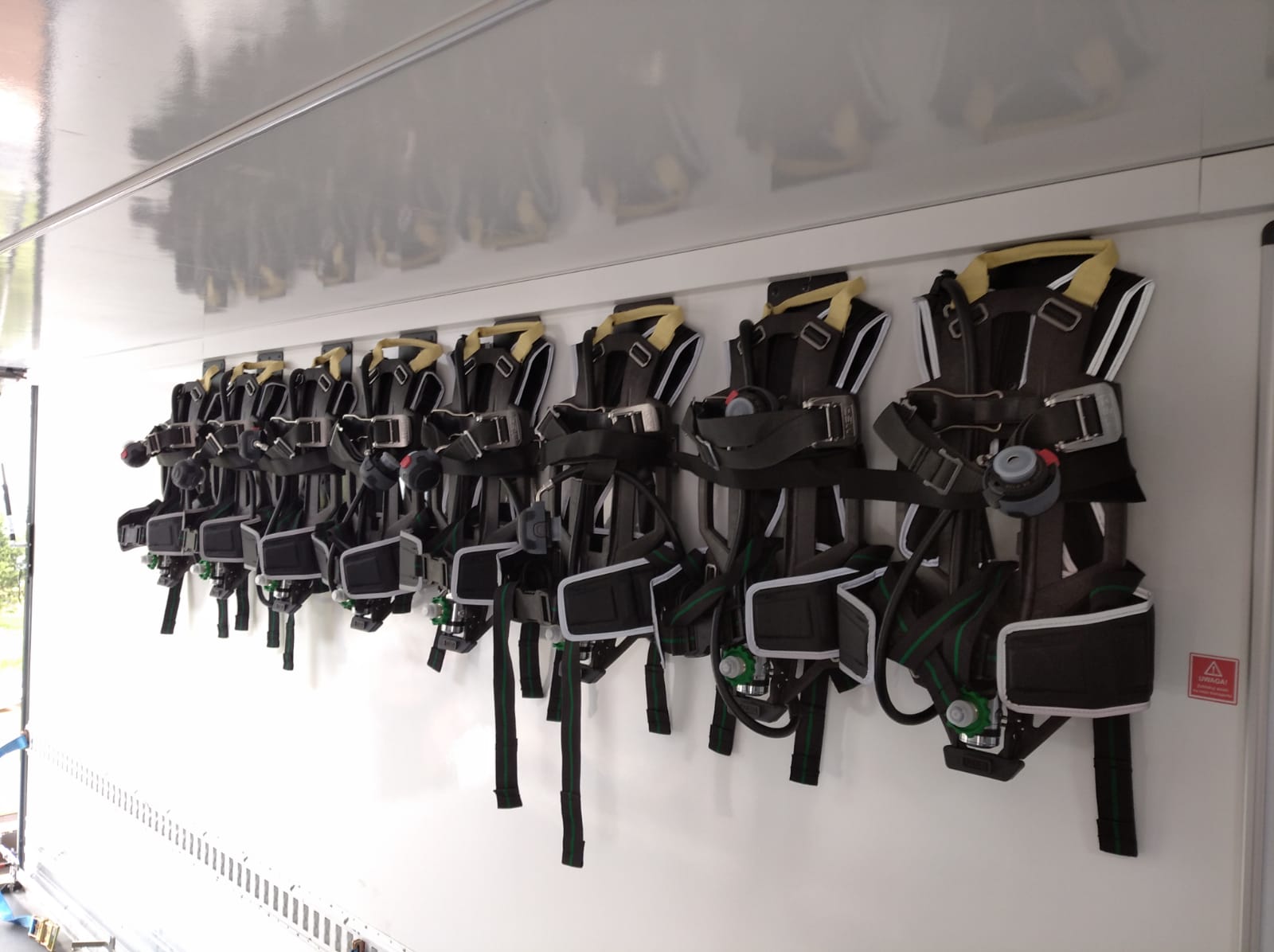 Część serwisowa wyposażona jest m.in. w stół roboczy, stanowisko do mycia masek ze zbiornikiem wody 30 litrów, regały i fotel obrotowy.