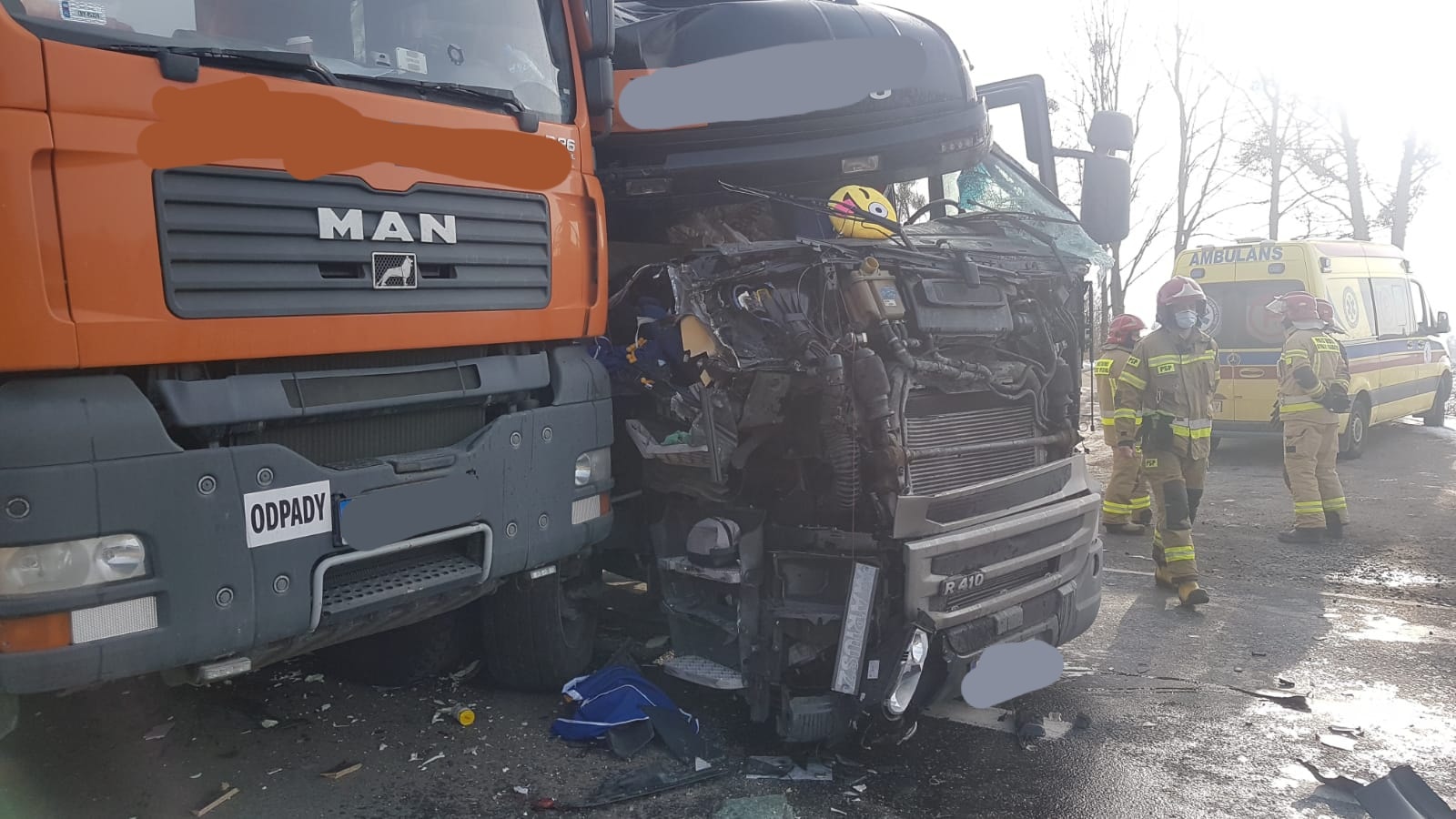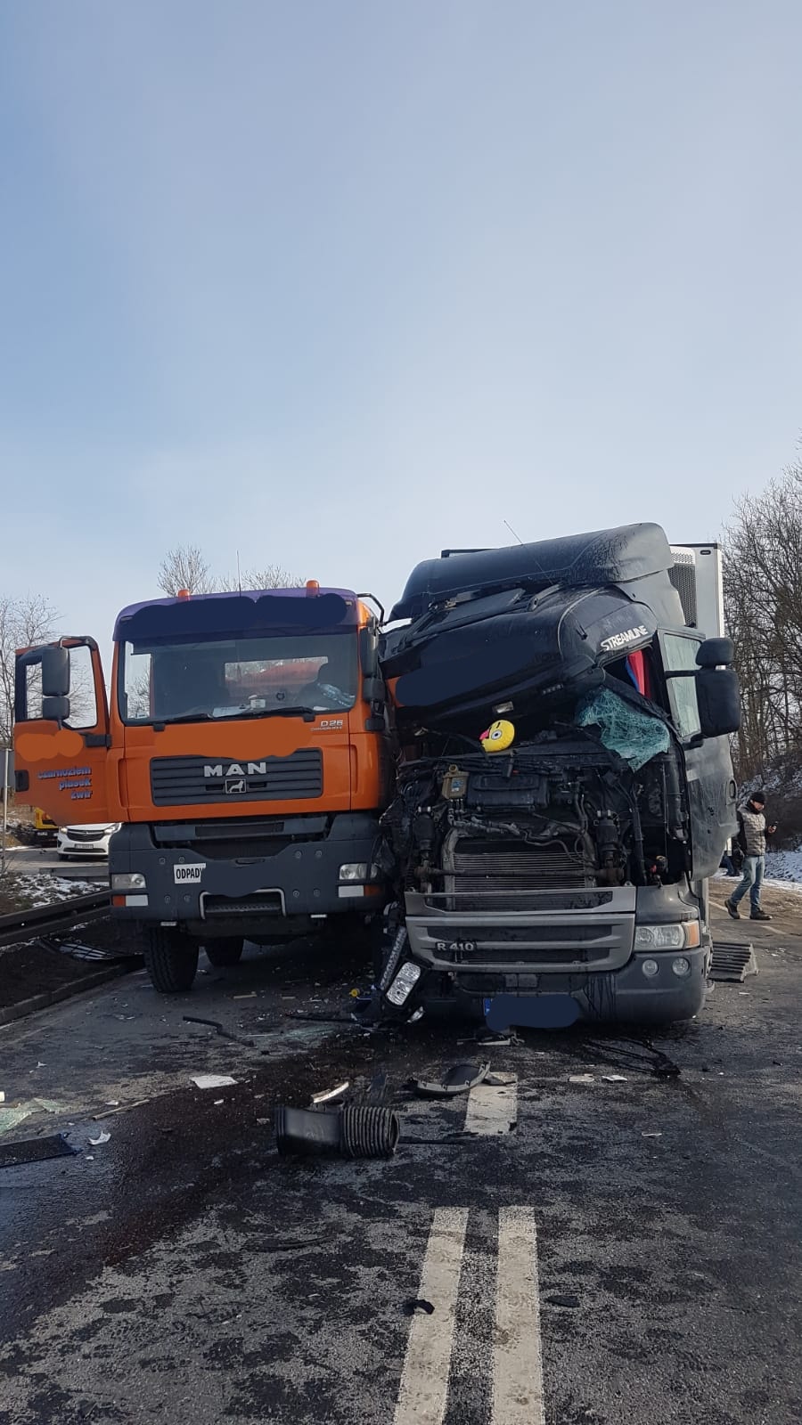 Zderzenie dwóch aut ciężarowych na DK10