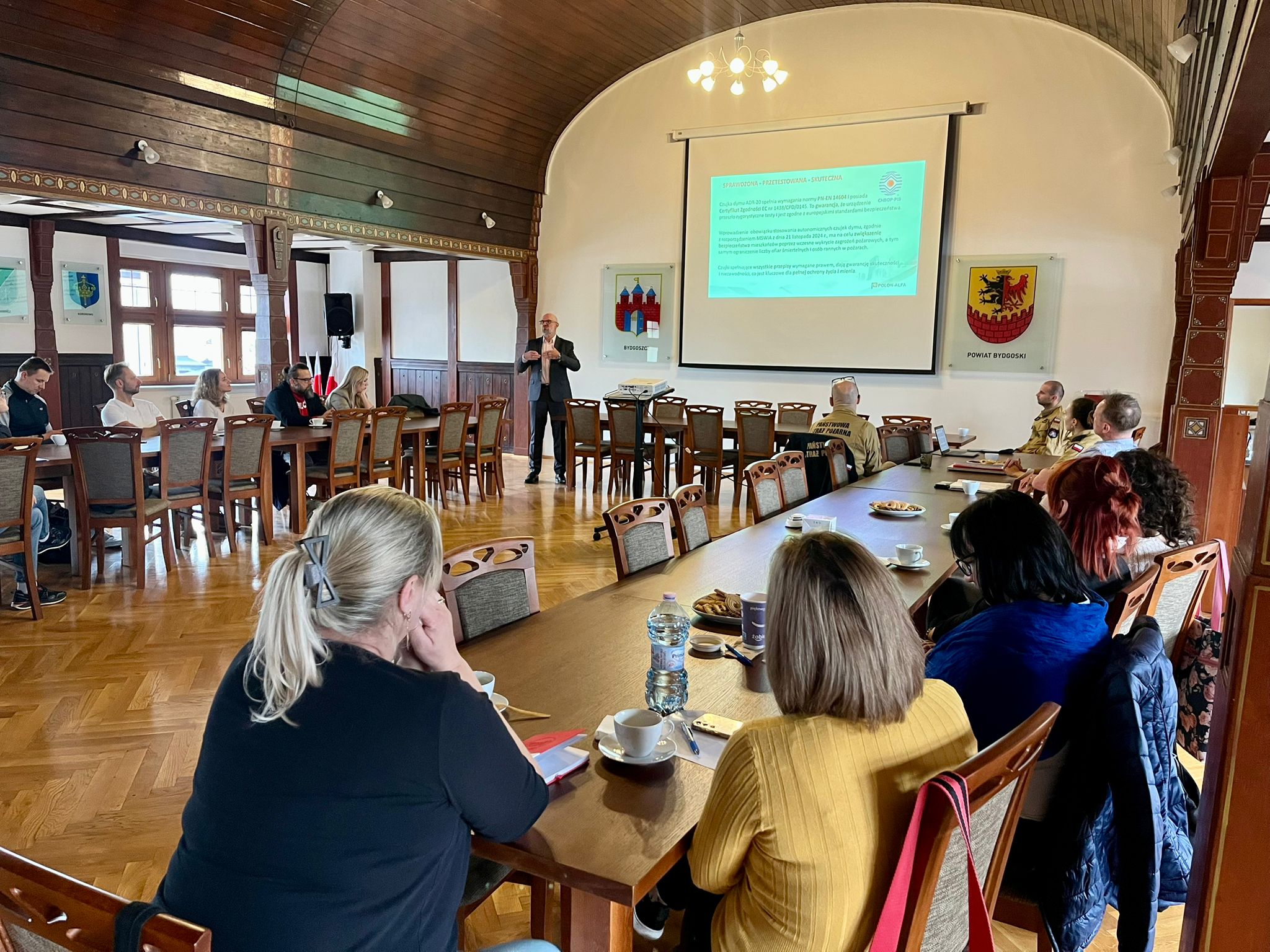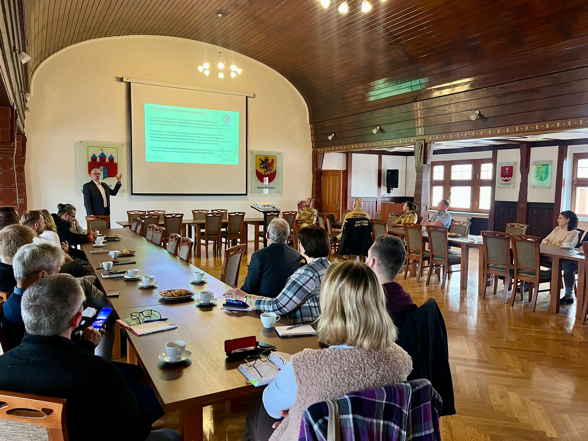 Wśród prelegentów znalazł się Pan Mariusz Radoszewski – przedstawiciel firmy POLON-ALFA S.A., największego polskiego producenta systemów sygnalizacji pożarowej, który przedstawił aktualne rozwiązania techniczne oraz dobre praktyki w zakresie wykrywania pożaru i tlenku węgla w obiektach mieszkalnych.