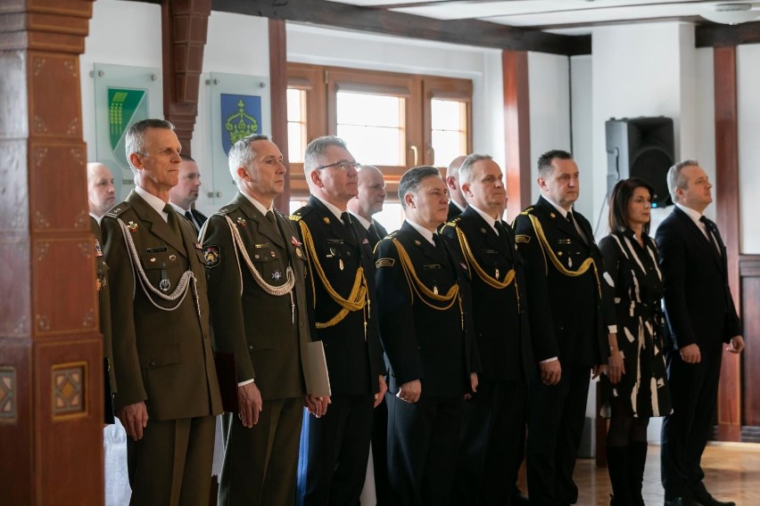 Liczne delegacje złożyły gratulacje st. bryg. Rafałowi Świechowiczowi, który służbę na stanowisku Komendanta Miejskiego PSP w Bydgoszczy rozpocznie 1 marca 2023 roku.