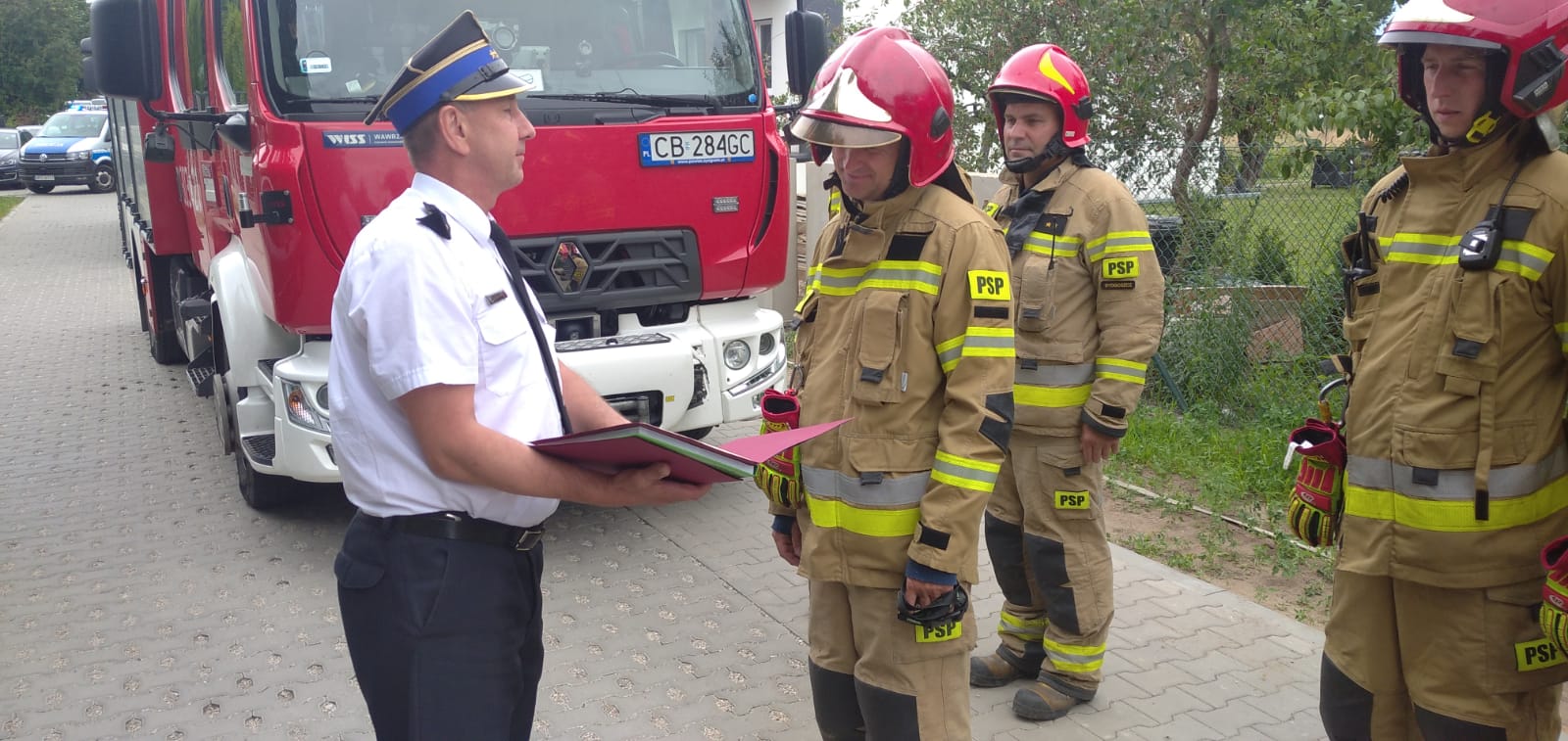 7 lipca 2022 roku na terenie Jednostki Ratowniczo-Gaśniczej nr 3 KM PSP w Bydgoszczy odbywało się uroczyste wręczenie nagród jubileuszowych. Podczas uroczystej zbiórki strażacy z JRG3 zostali zaalarmowani do zdarzenia przy ul. Rozmarynowej w Myślęcinku, gdzie doszło do uszkodzenia gazociągu. Wszyscy uczestnicy zbiórki, włącznie z Komendantem Miejskim Państwowej Straży Pożarnej w Bydgoszczy st. bryg. Janisławem Bullerem, ruszyli do działań. Po opanowaniu sytuacji przy miejscu zdarzenia zorganizowano ponownie zbiórkę, podczas której Komendant Miejski PSP w Bydgoszczy wręczył funkcjonariuszom decyzje o przyznaniu nagród z okazji jubileuszu pracy zawodowej i służby w szeregach Państwowej Straży Pożarnej.