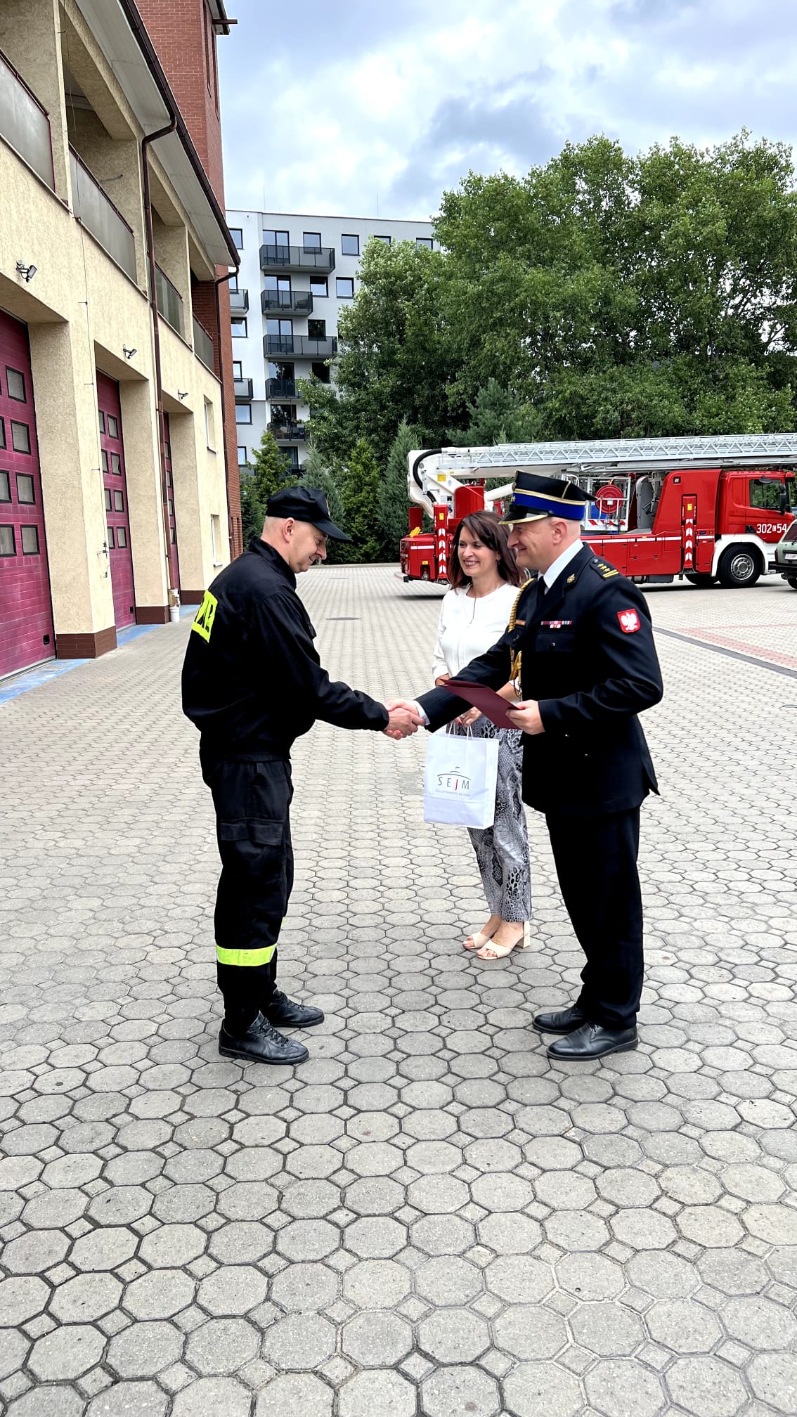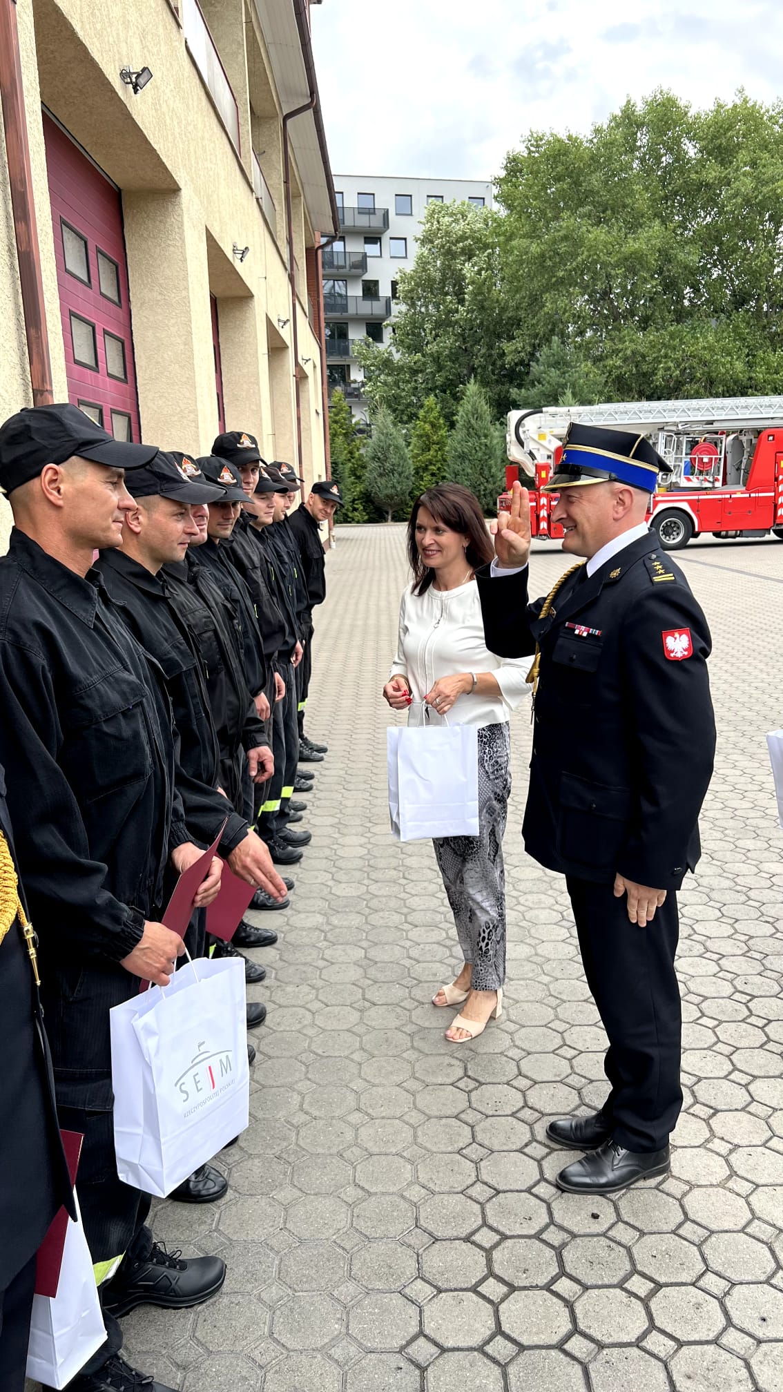 25 lipca 2023 roku w Jednostce Ratowniczo-Gaśniczej nr 2 w Bydgoszczy odbyło się uroczyste wręczenie pochwał z wpisem do akt dla ratowników, którzy byli najmocniej zaangażowani w działania zmierzające do usunięcia zagrożenia podczas wycieku kwasu solnego, jaki miał miejsce w dniu 22 czerwca br. W Bydgoszczy. Wyróżnieni strażacy oprócz pisemnych pochwał otrzymali również upominki z rąk Pani Poseł Ewy Kozaneckiej. W uroczystej zbiórce udział wzięli również st. bryg. Rafał Świechowicz - Komendant Miejski PSP w Bydgoszczy wraz z Zastępcą bryg. Rafałem Maraszem.