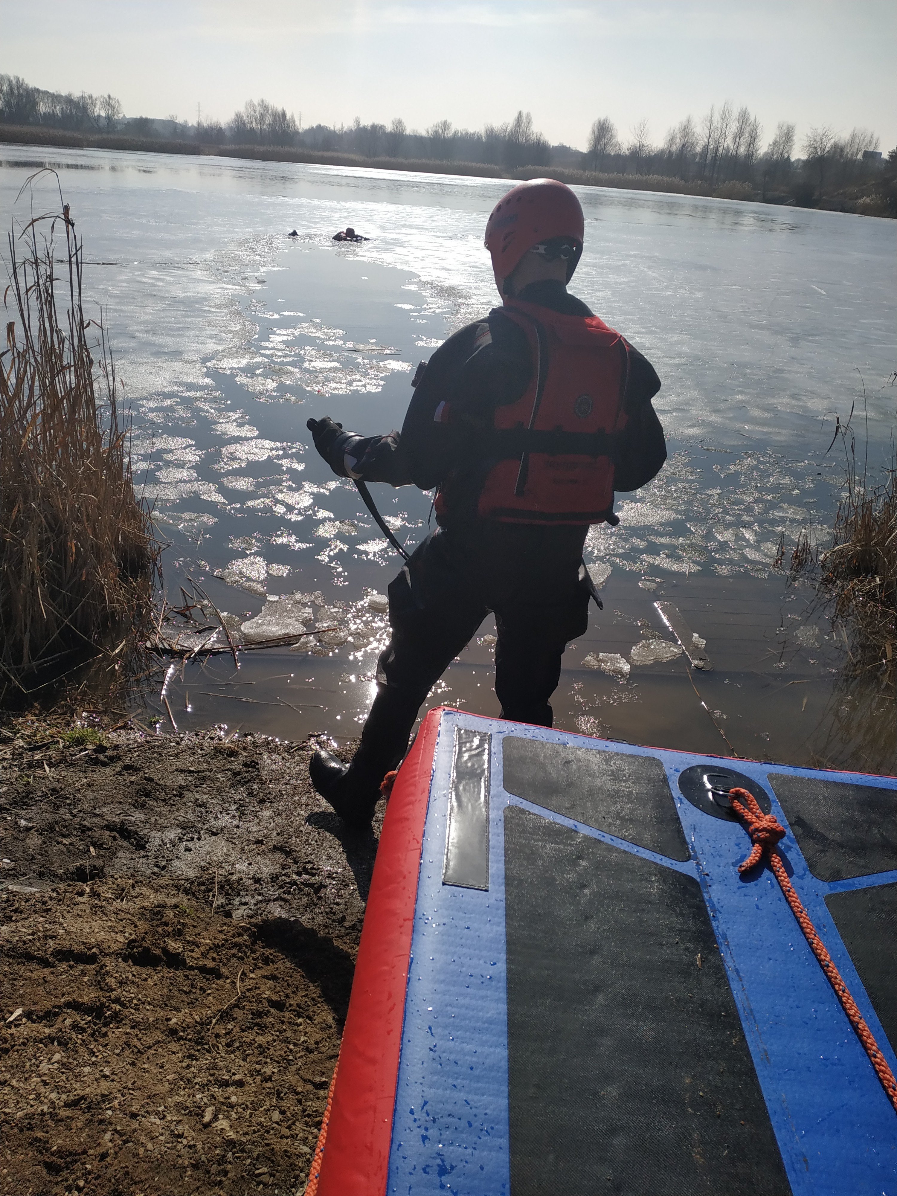 Wiosenne roztopy i cienki, pokruszony lód na zbiornikach wodnych to doskonała okazja do zorganizowania realistycznych ćwiczeń z zakresu ratownictwa lodowego.