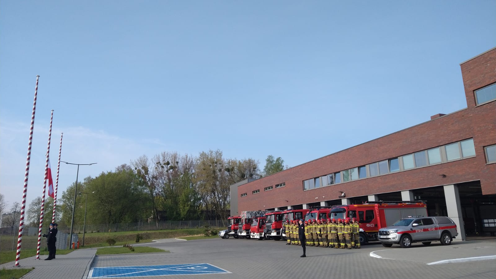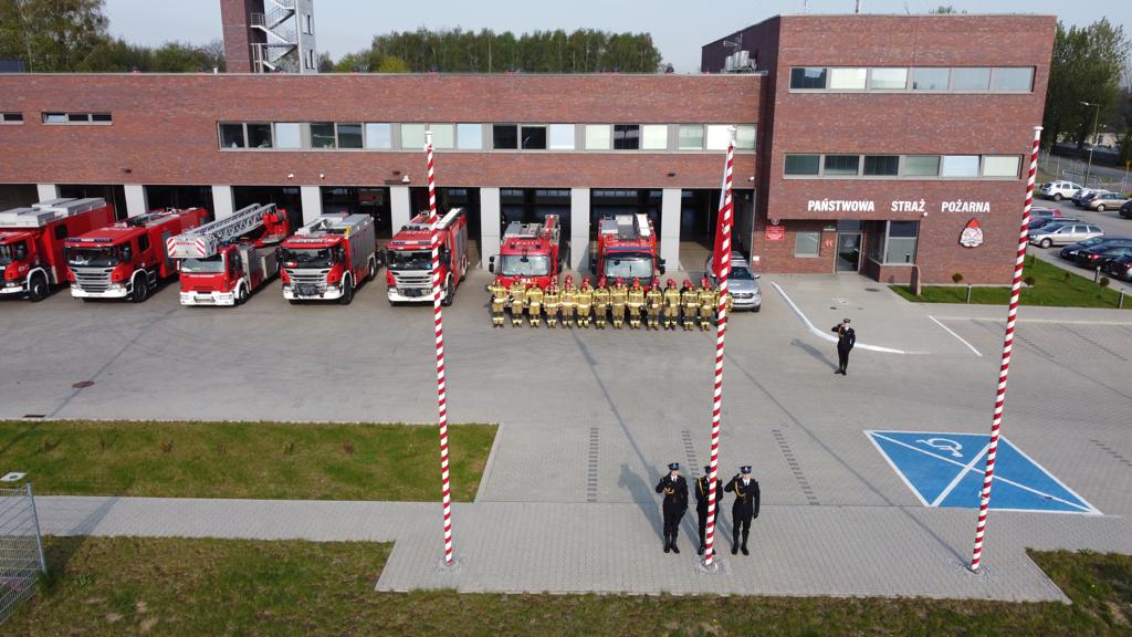 Dzień Flagi Rzeczypospolitej Polskiej w Komendzie Miejskiej Państwowej Straży Pożarnej w Bytomiu.