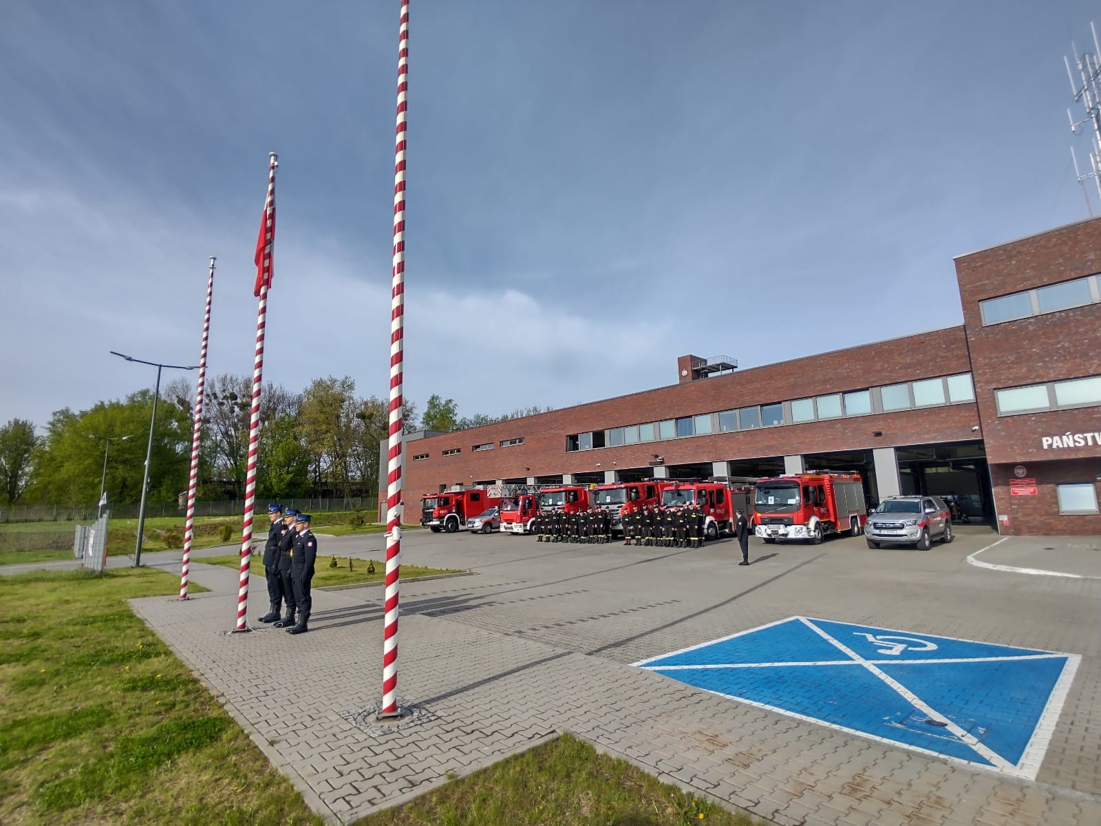 Dzień Flagi Rzeczypospolitej Polskiej w Komendzie Miejskiej Państwowej Straży Pożarnej w Bytomiu.