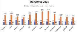 Strażacy w 2021 roku ugasili prawie taką samą liczbę pożarów co w 2020 r. (2021r. – 644, 2020r. - 678), liczba miejscowych zagrożeń to 1854 (w 2020 - 1839.