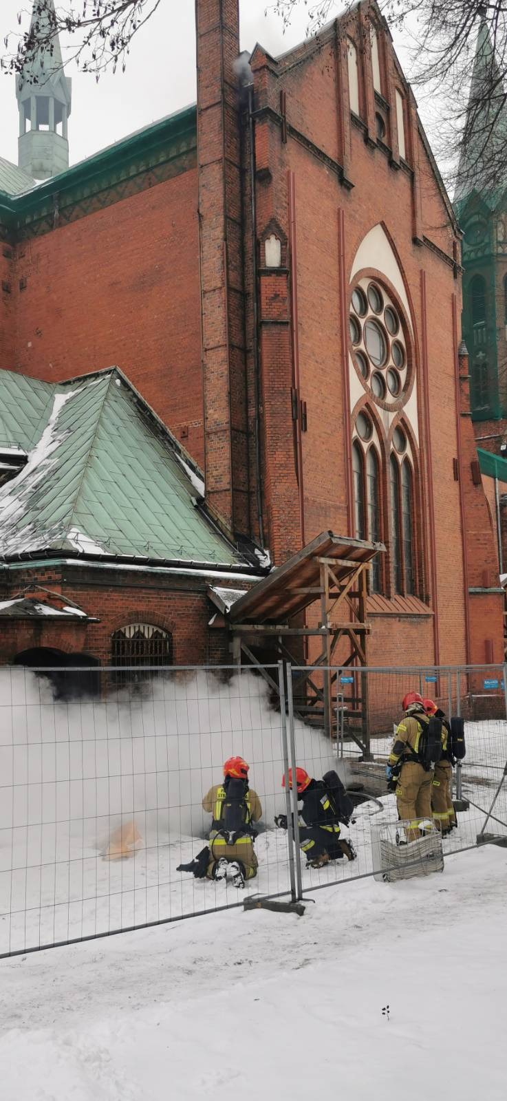 24 stycznia 2022 o godz: 11:00 Stanowisko Kierowania Komendanta Miejskiego Państwowej Straży Pożarnej w Bytomiu otrzymało zgłoszenie o pożarze w kotłowni kościoła przy ul. Popiełuszki.
