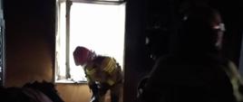 Po przybyciu na miejsce zdarzenia potwierdzono pożar w mieszkaniu na I piętrze budynku 4- kondygnacyjnego.