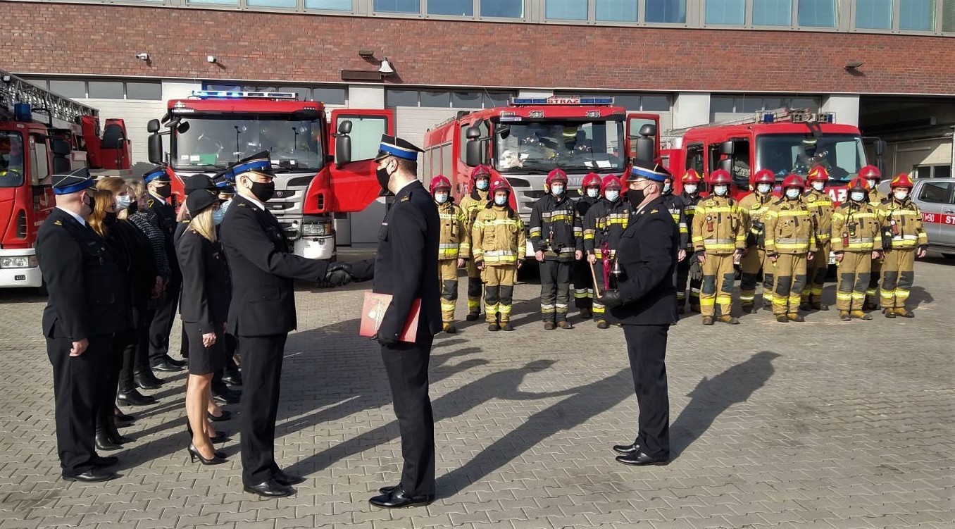 Komendant Miejski Państwowej Straży Pożarnej w Bytomiu mł. bryg. Marek Trefon podziękował funkcjonariuszowi za wieloletnią służbę i wkład w rozwój Jednostki Ratowniczo-Gaśniczej oraz wręczył Decyzję nr 2014/2020 Komendanta Głównego PSP nadbryg. Andrzeja Bartkowiaka z dnia 31 grudnia 2020 o zwolnieniu ze służby i przejściu na zaopatrzenie emerytalne.