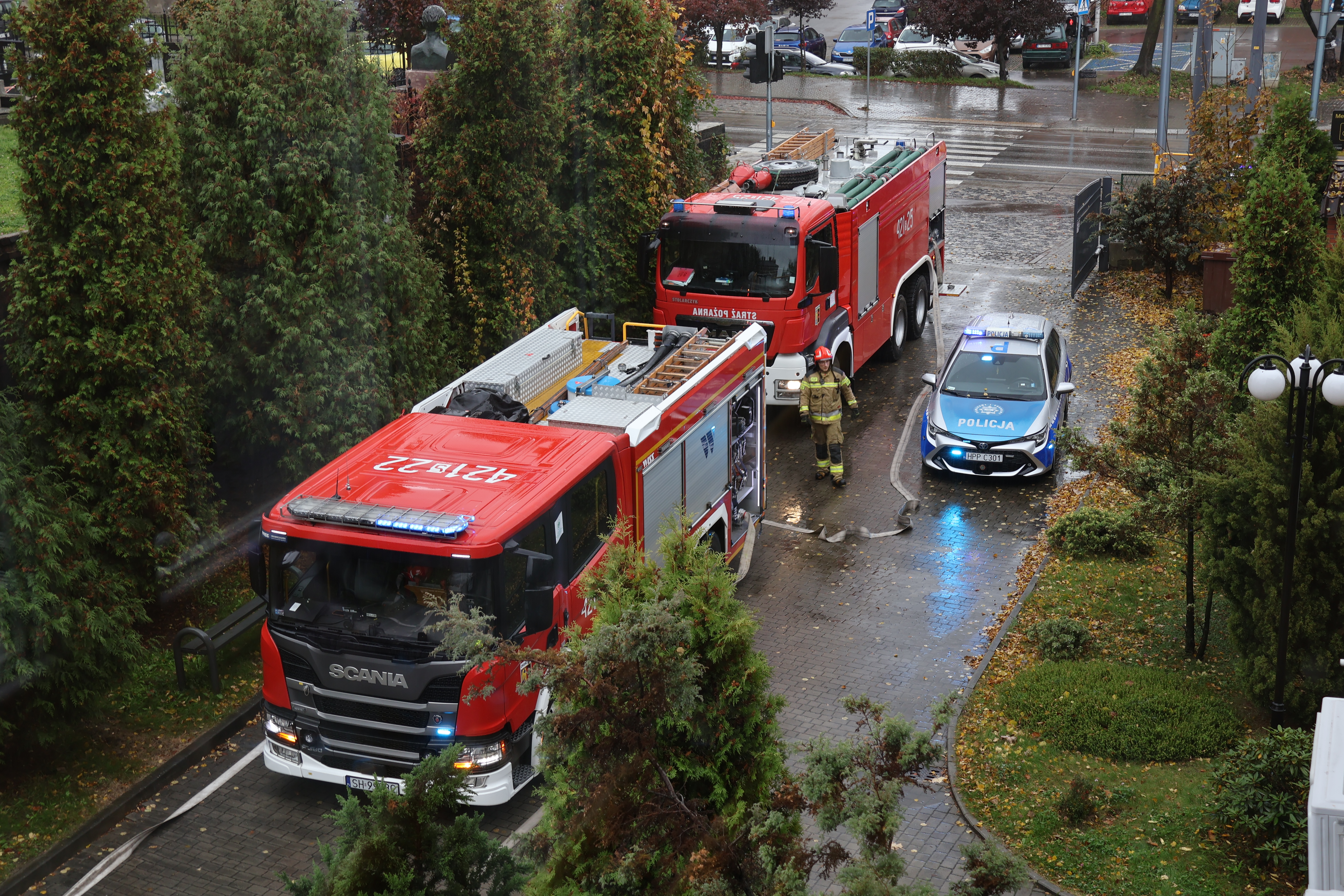 Ćwiczenia symulowały sytuację pożarową, w której doszło w jednej z klas podczas eksperymentu chemicznego przedstawiającego reakcję egzotermiczną.