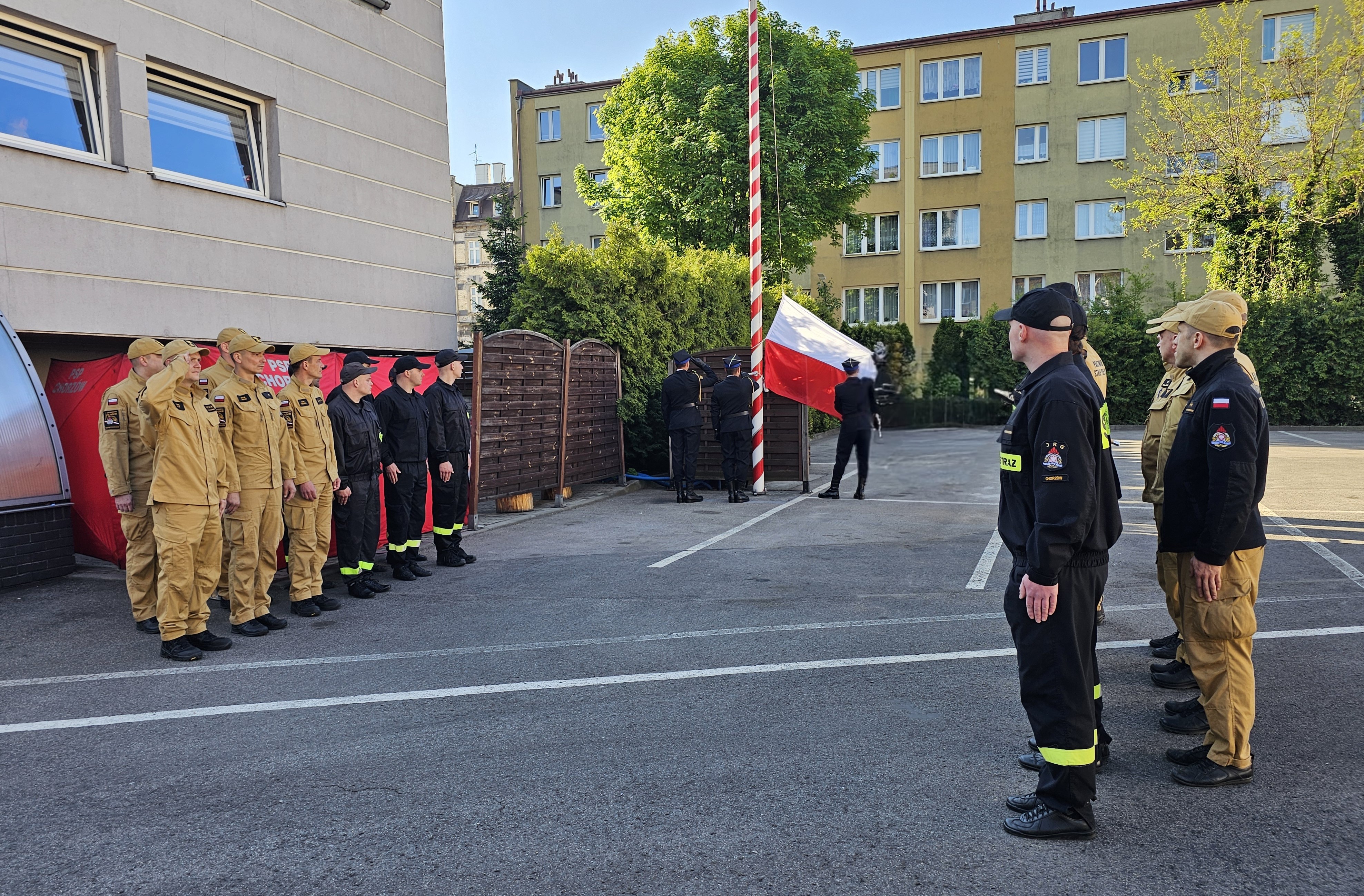 2 maja o godzinie 8:00 funkcjonariusze Komendy Miejskiej Państwowej Straży Pożarnej w Chorzowie dokonali uroczystej zmiany służby, podczas której odegrano hymn państwowy i podniesiono flagę państwową na maszt.