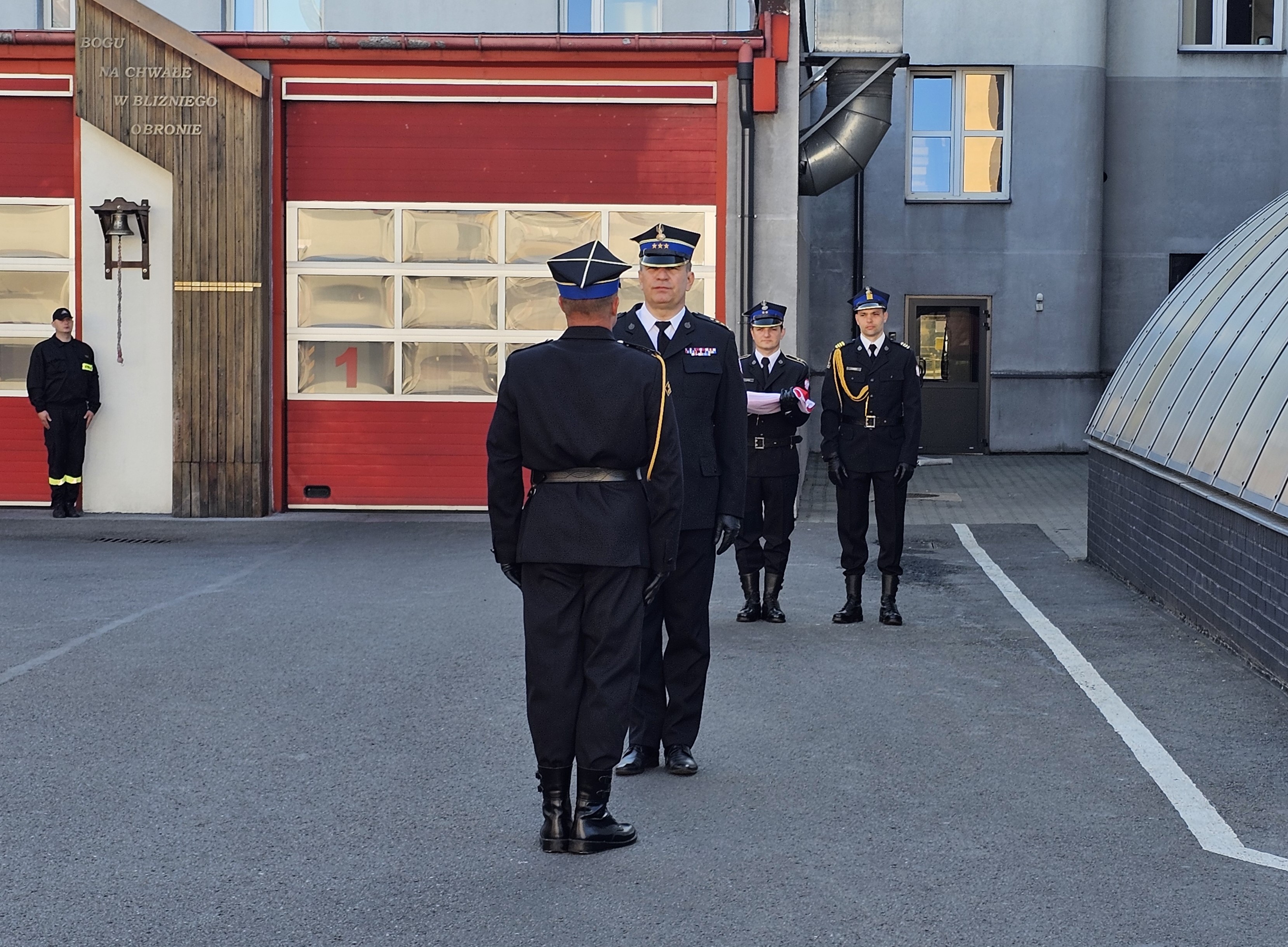 Dzień Flagi Rzeczypospolitej Polskiej w Komendzie Miejskiej Państwowej Straży Pożarnej w Chorzowie