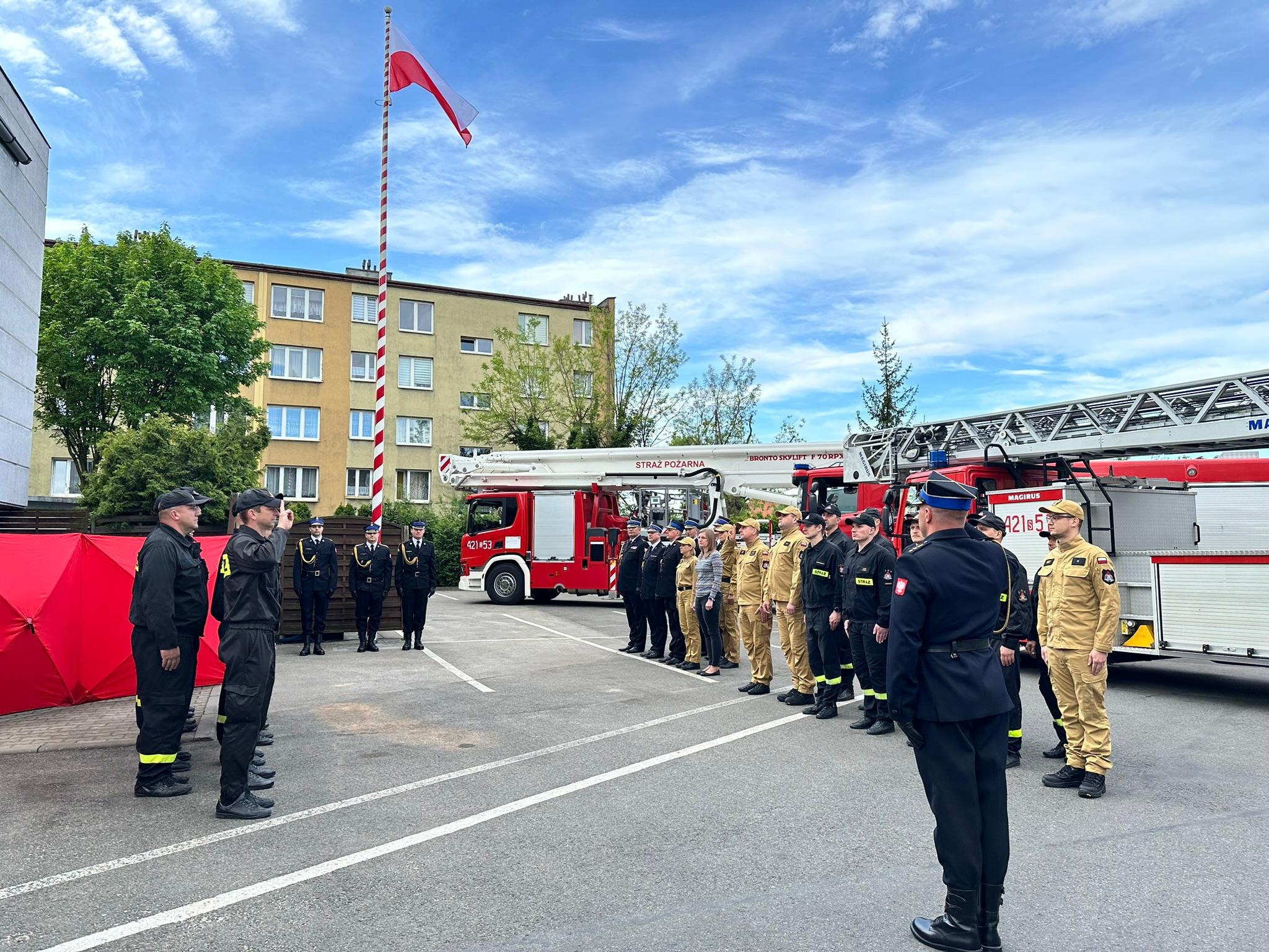 2 maja o godzinie 8:00 funkcjonariusze Komendy Miejskiej Państwowej Straży Pożarnej w Chorzowie dokonali uroczystej zmiany służby, podczas której odegrano hymn państwowy i podniesiono flagę państwową na maszt.