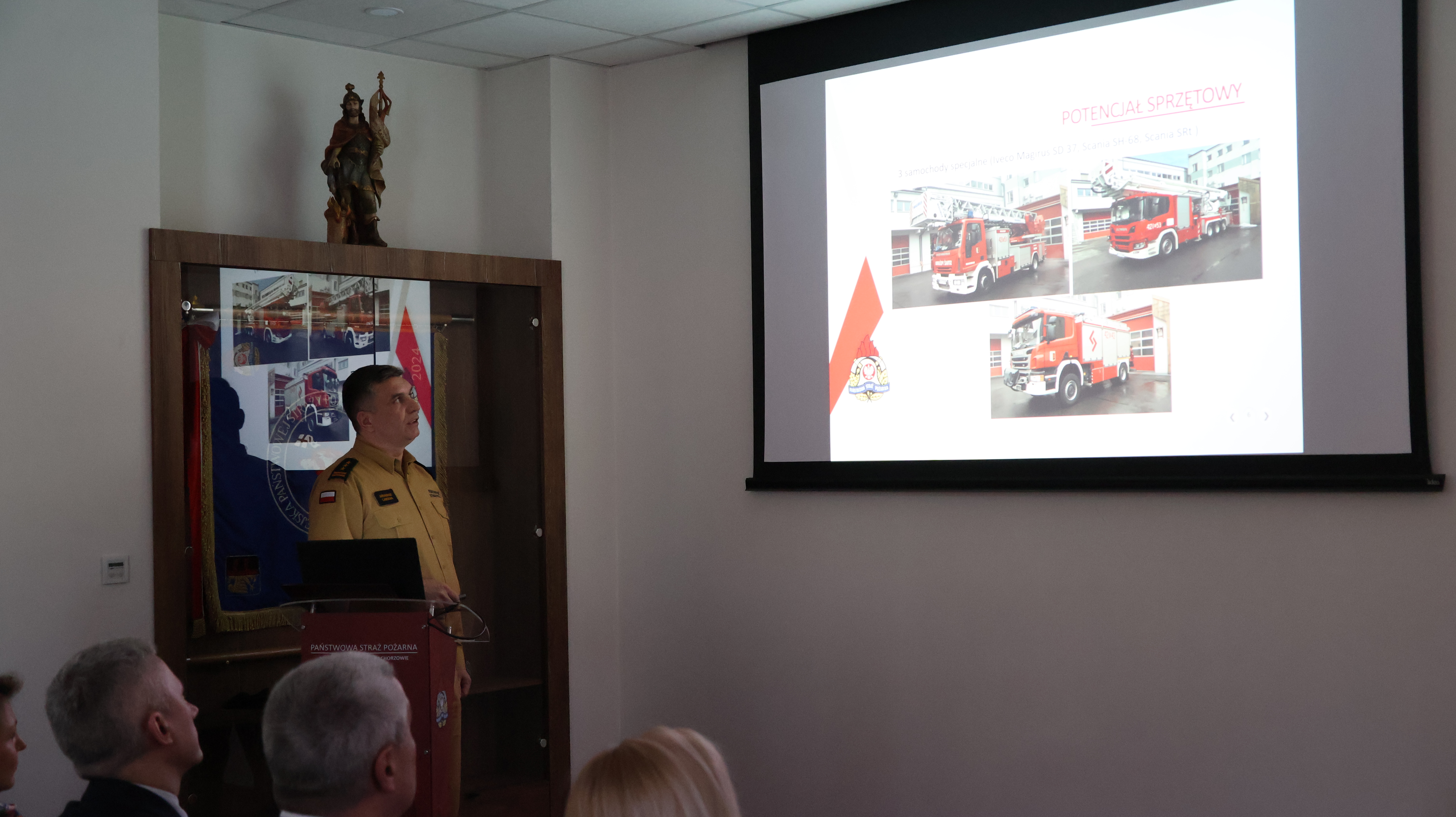 W naradzie uczestniczyli: Posłanka na Sejm Rzeczypospolitej Polskiej Pani Monika Rosa, Poseł na Sejm Rzeczypospolitej Polskiej Pan Łukasz Ściebiorowski, Zastępca Śląskiego Komendanta Wojewódzkiego Państwowej Straży Pożarnej st. bryg. Roman Klecha, Drugi Zastępca Prezydenta Miasta Chorzów Pan Marek Akciński, Przewodnicząca Rady Miasta Chorzów Pani Katarzyna Sudoł, Zastępca Prokuratora Rejonowego w Chorzowie prok. Edyta Dzieża, Szef Wojskowego Centrum Rekrutacji w Chorzowie ppłk. Krzysztof Szmyt, I zastępca Komendanta Miejskiego Policji w Chorzowie nadkom. Michał Madej, Dyrektor Wydziału Zarządzania Kryzysowego i Ochrony Ludności Miasta Chorzów Pan Grzegorz Barczyk, p. o. Komendant Straży Miejskiej Pan Krzysztof Borowiec, Przewodniczący Komisji Infrastruktury i Bezpieczeństwa Miasta Chorzów Pan Sławomir Kordela, asystent Senator Rzeczypospolitej Polskiej Gabrieli Morawskiej – Staneckiej Pan Jarosław Bogocz, Dyrektor Szpitala Specjalistycznego w Chorzowie Pani Edyta Taracha-Szewczyk, Prezes Zarządu Grupa Azoty Pani Karolina Jasiak-Małota, Kierownik Stacji Pogotowia Ratunkowego w Chorzowie Pani Joanna Rybarczyk, Dyrektor Infrastruktury i Rozwoju Tramwaje Śląskie Pan Marcin Michalik, Dyrektor SP ZOZ Zespół Szpitali Miejskich w Chorzowie Pan Piotr Nowak, Komendant Miejski PSP w Chorzowie w st. bryg. st. sp. Paweł Nalepka oraz funkcjonariusze i pracownicy cywilni Komendy Miejskiej PSP w Chorzowie.