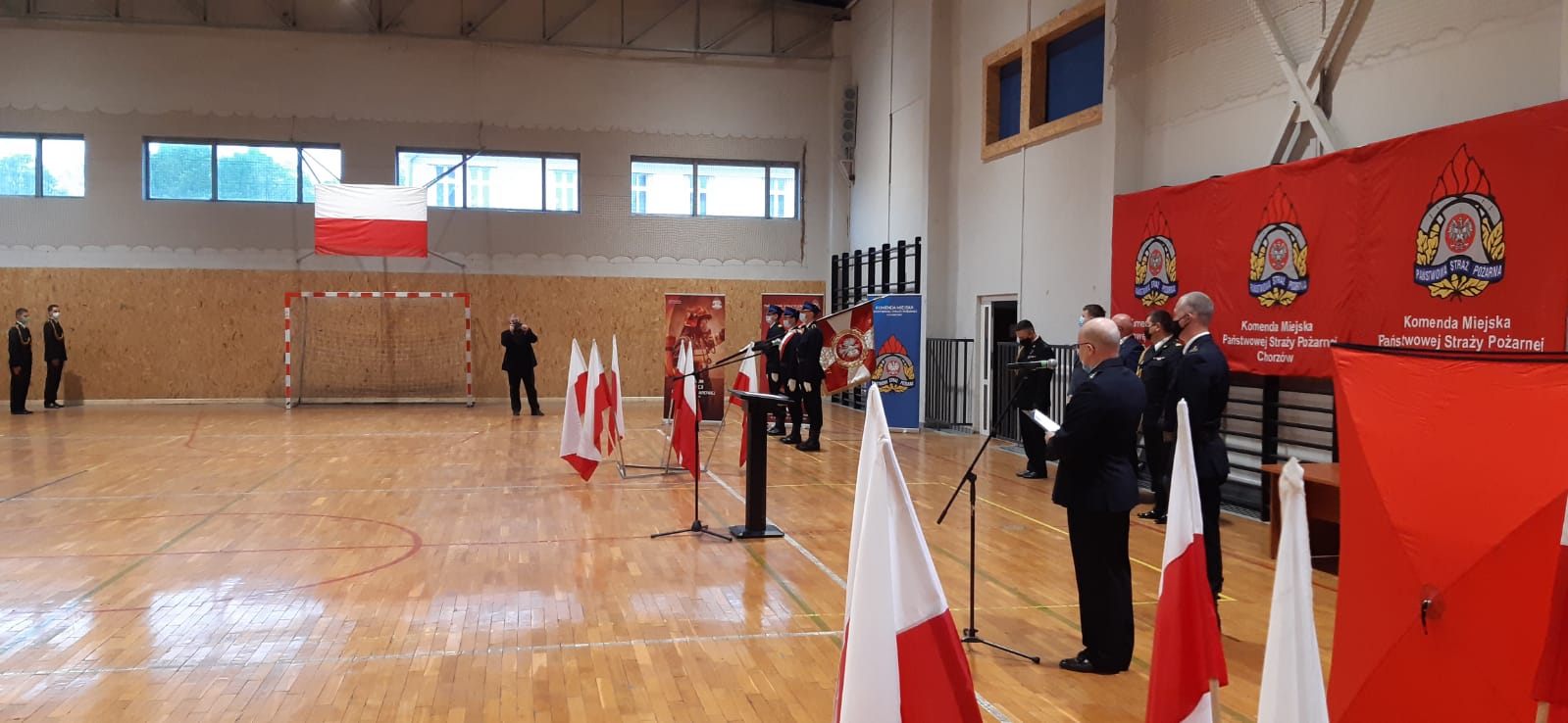 Po odegraniu hymnu narodowego, Komendant Miejski Państwowej Straży Pożarnej w Chorzowie bryg. Paweł Nalepka powitał wszystkich strażaków i pracowników chorzowskiej komendy oraz zaproszonych gości.