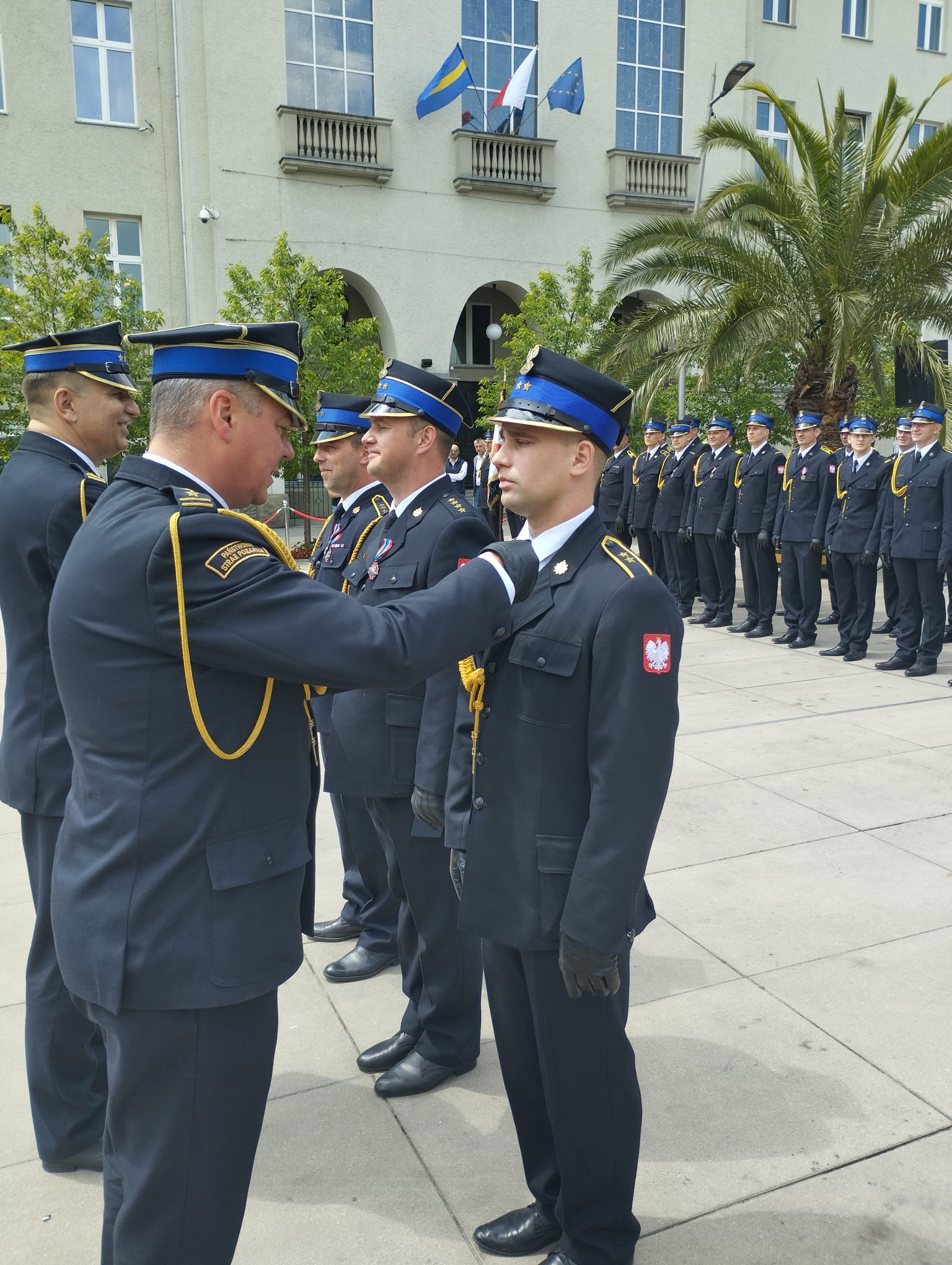 Podczas uroczystej zbiórki wręczono Dyplom Komendanta Głównego Państwowej Straży Pożarnej 1 funkcjonariuszowi za wzorową postawę i wysokie osiągnięcia w realizacji zadań służbowych.