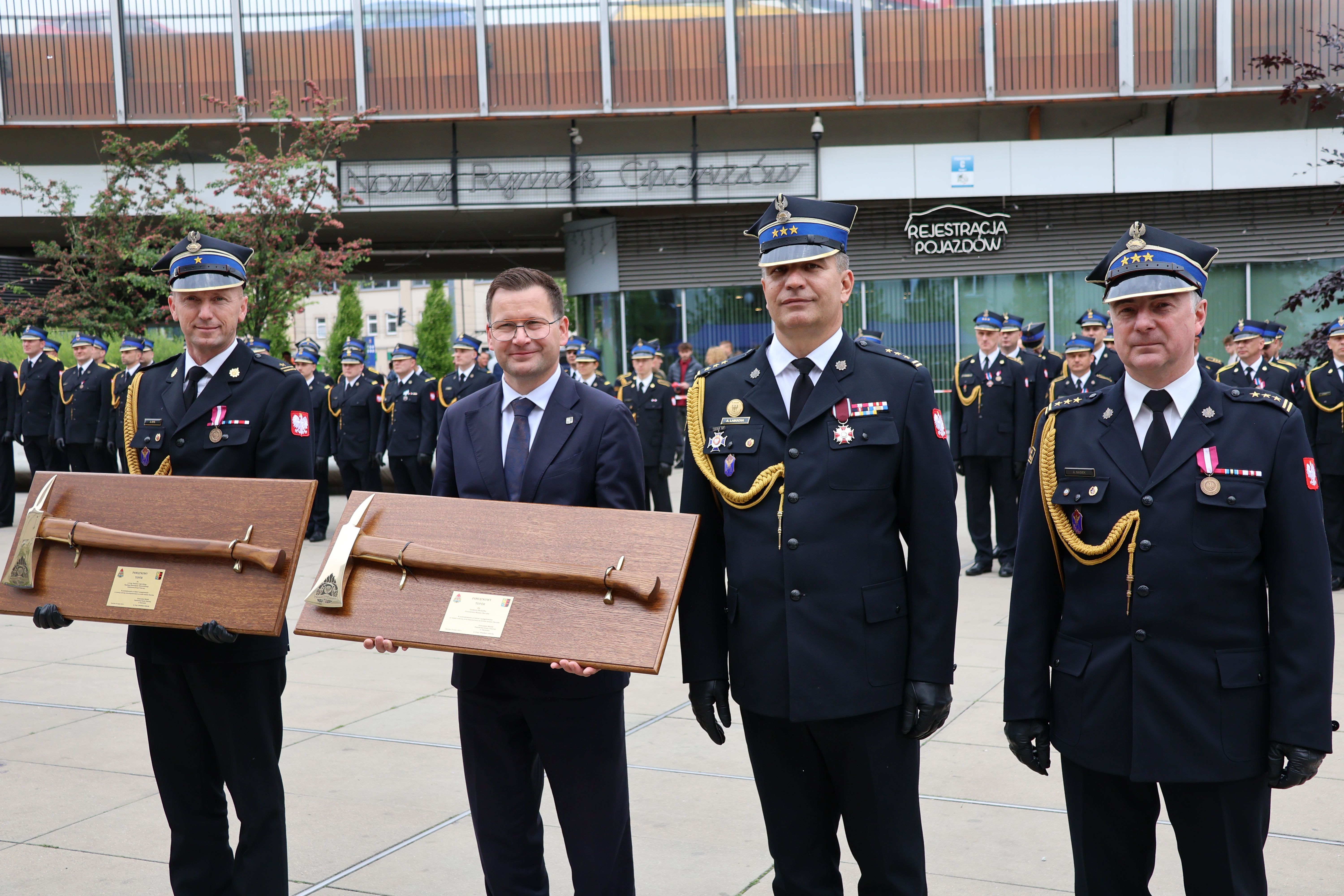 w Chorzowie, Komendant Miejski Państwowej Straży Pożarnej st. bryg. Arkadiusz Labocha ufundował pamiątkowe topory strażackie, które otrzymali: