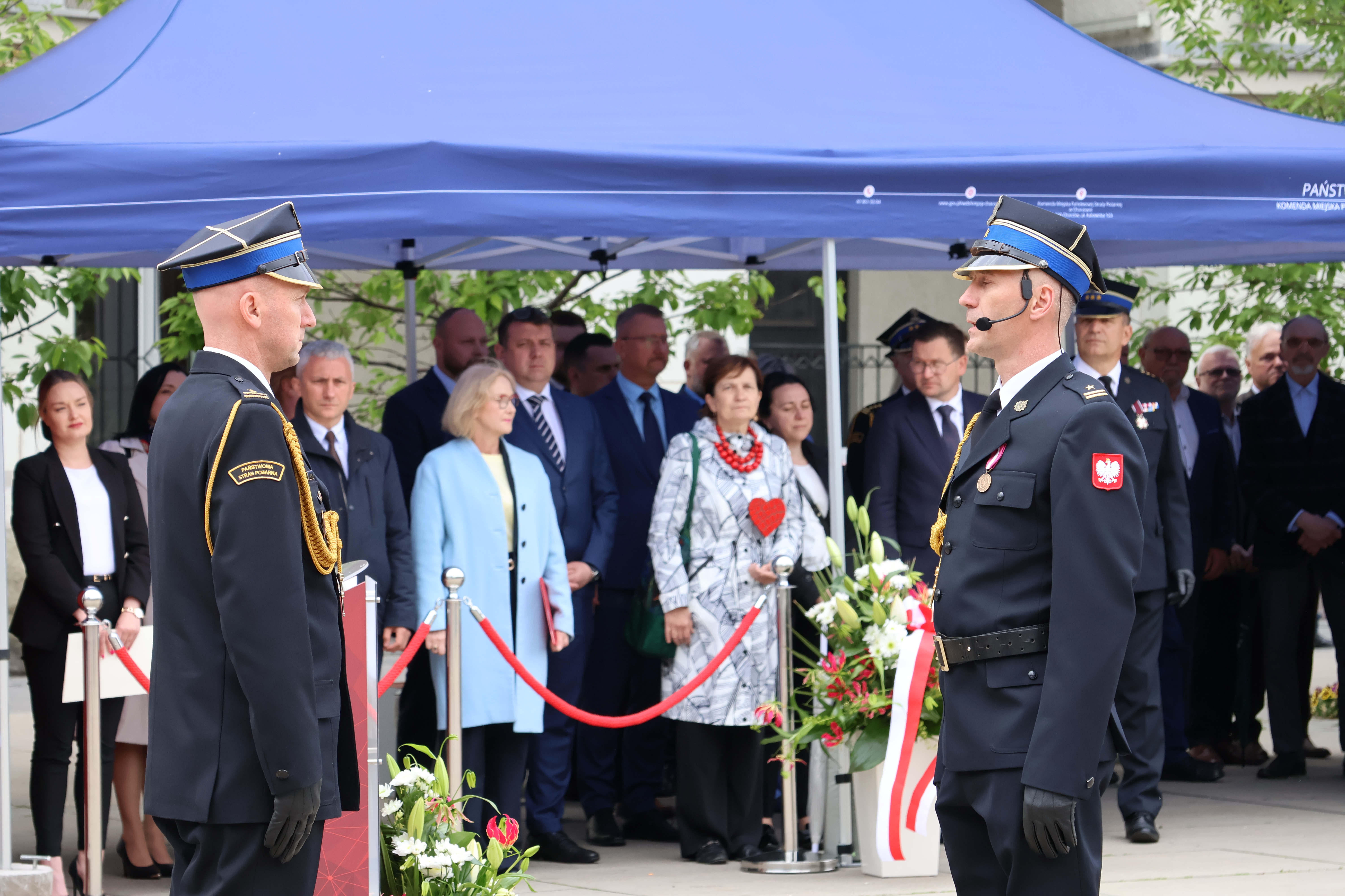 Meldunek o rozpoczęciu uroczystego apelu przyjął zastępca Śląskiego Komendanta Wojewódzkiego Państwowej Straży Pożarnej, mł. bryg. Zbigniew Dyk, po czym dokonał przeglądu pododdziału i przywitał się z funkcjonariuszami.