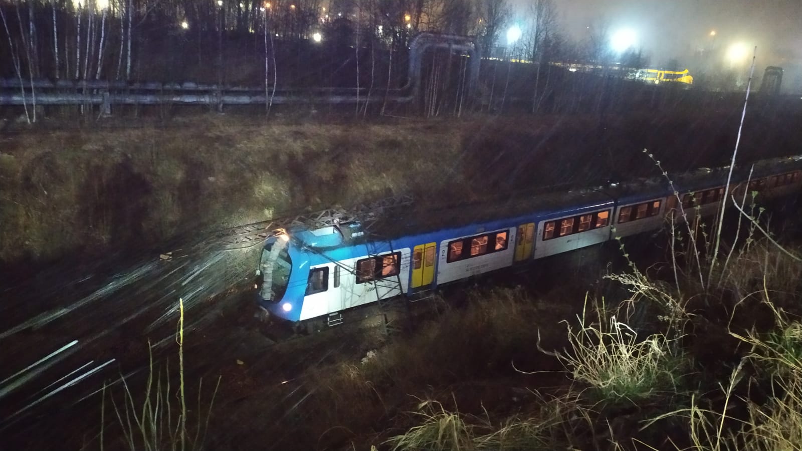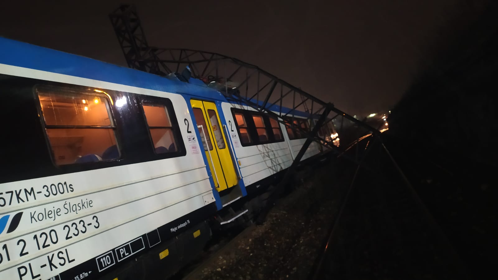 Po przybyciu na miejsce zdarzenia KDR uzyskał informację od będących na miejscu zdarzenia funkcjonariuszy Służby Ochrony Kolei, że na pociąg linii 131 (3 wagony) relacji Chorzów Miasto - Chorzów Stary przewróciły się dwie bramki trakcyjne wraz siecią. Pociąg został unieruchomiony. W pociągu znajdowało się 19 pasażerów oraz dwie osoby z obsługi (maszynista i kierownik pociągu). KDR uzyskał informację od kierownika pociągu, że żaden z pasażerów nie jest poszkodowany i nie wymagali udzielenia pomocy medycznej. Do czasu odłączenia zasilania w sieci trakcyjnej wszyscy pasażerowie pozostali w pociągu.