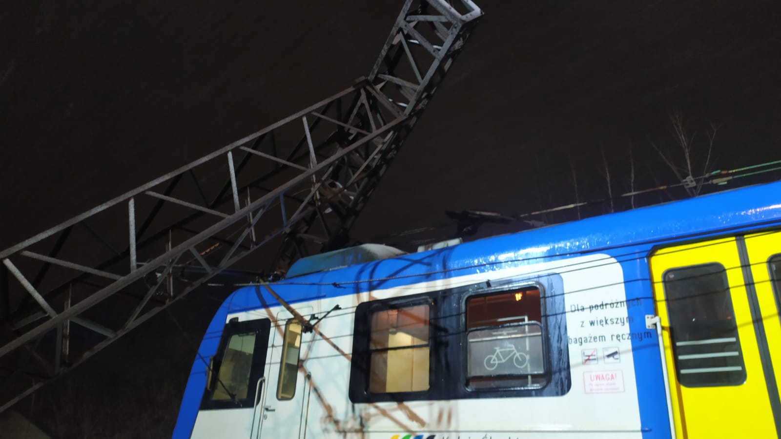 Przewrócenie się bramek trakcyjnych na pociąg pasażerski