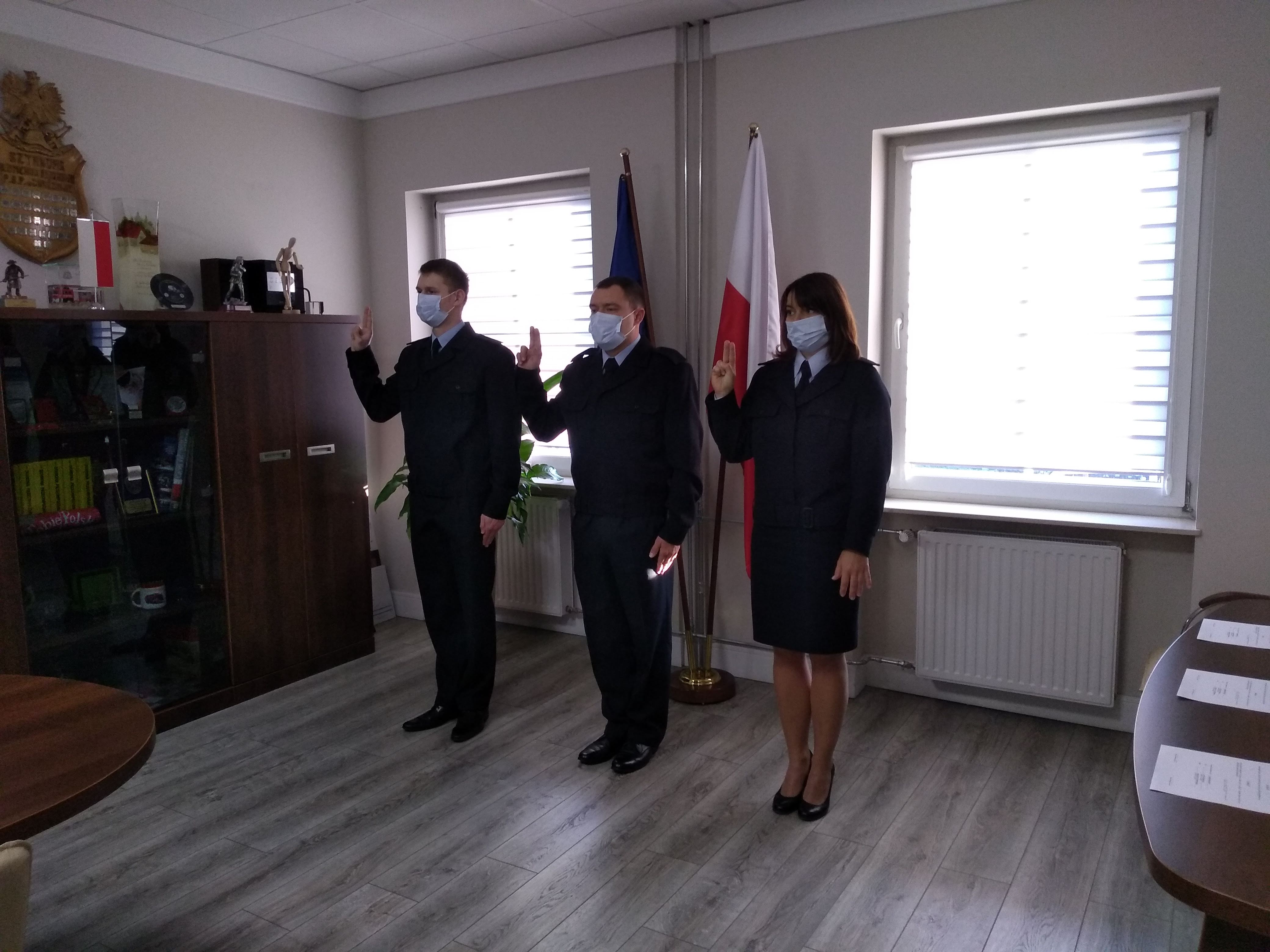 Nowi strażacy zostali przyjęci do służby w październiku 2021r., po przejściu wszystkich etapów postępowania kwalifikacyjnego na stanowisko docelowe: starszy ratownik.