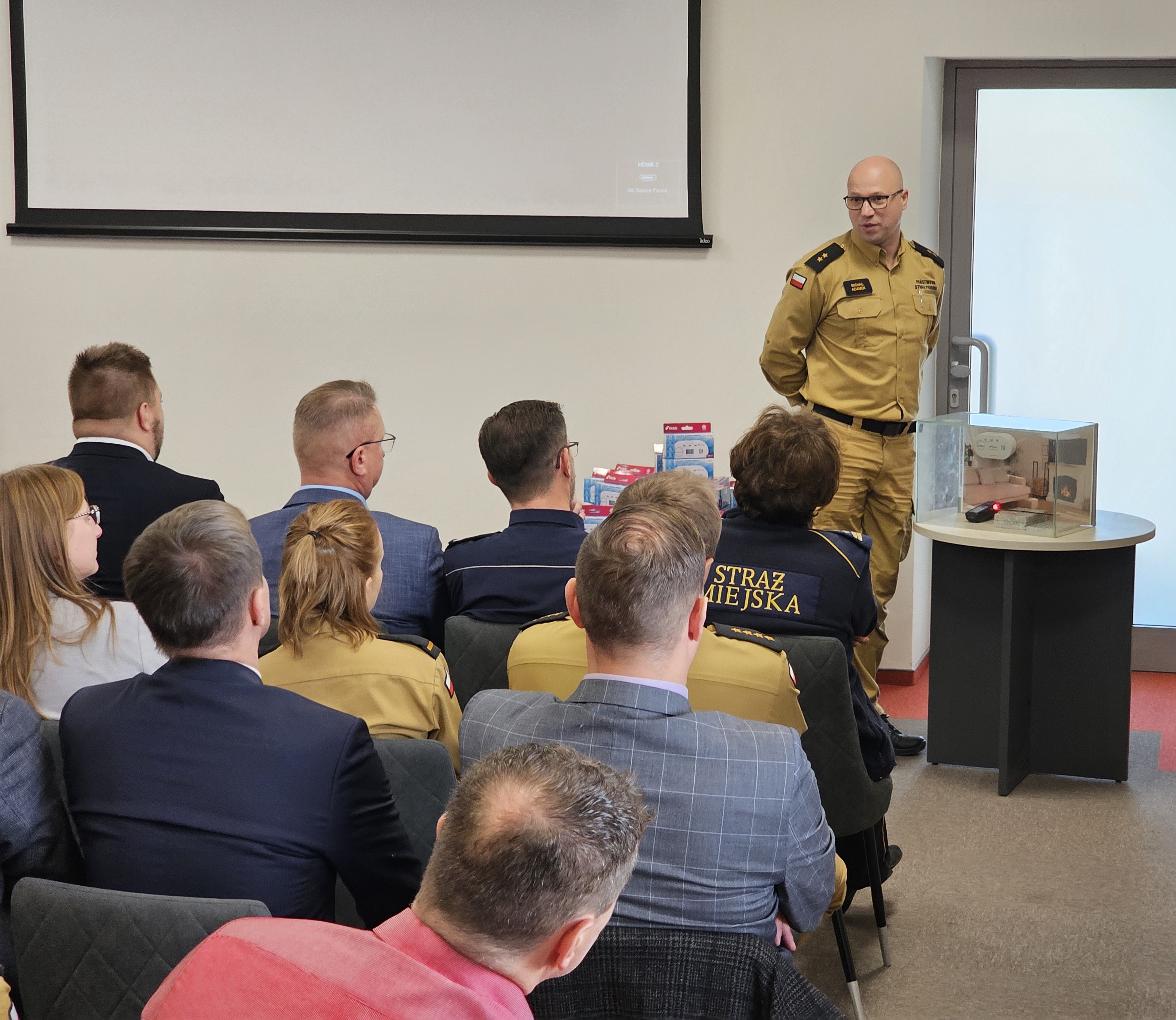 Spotkanie obejmowało prelekcję dotyczącą tlenku węgla, jego właściwości toksycznych dla organizmu ludzkiego, statystyk związanych ze zdarzeniami spowodowanymi wystąpieniem tlenku węgla, pożarami w mieszkaniach i domach jednorodzinnych, a także prawidłowej eksploatacji czujek dymu i tlenku węgla.