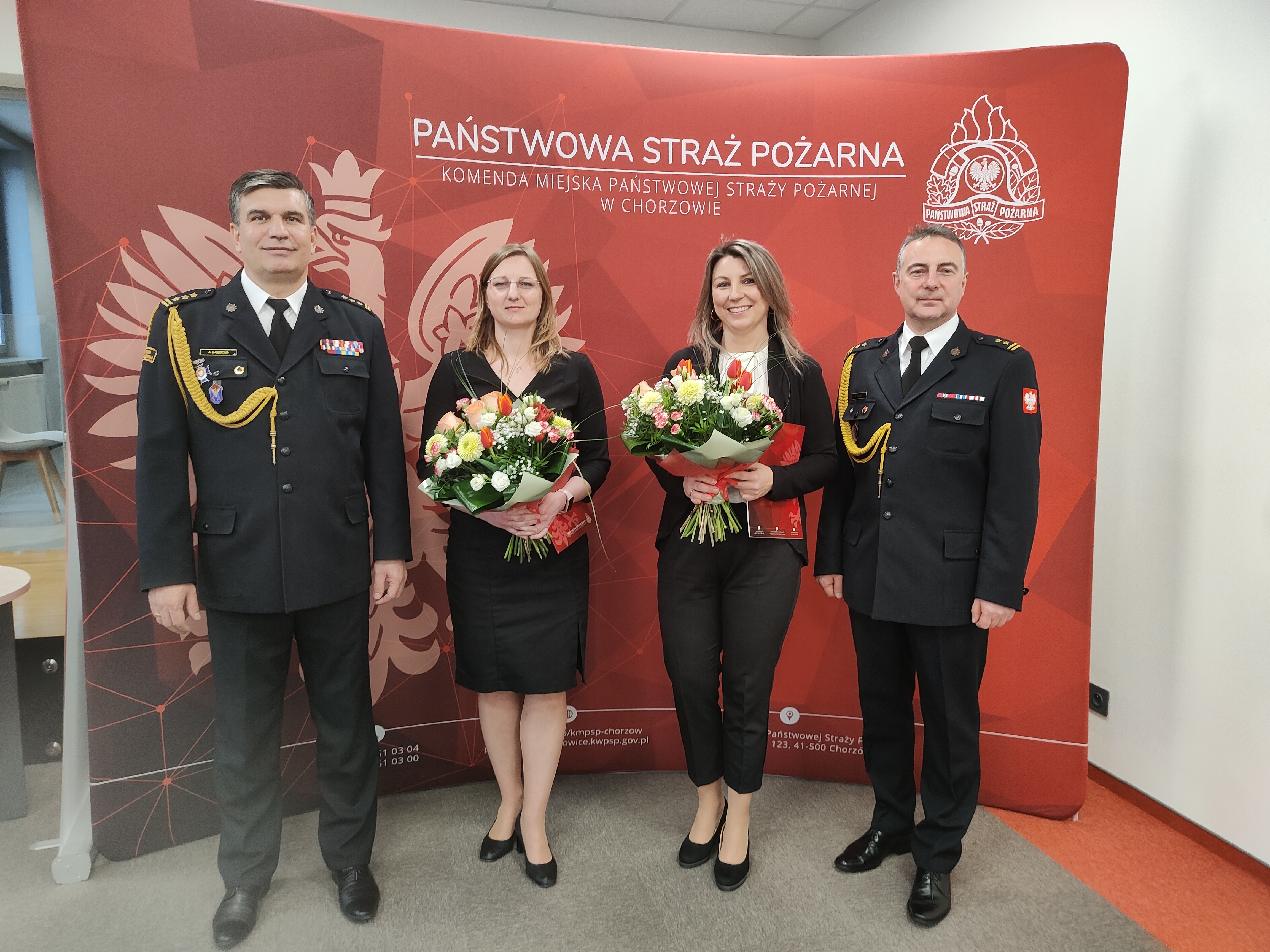 Na spotkaniu Komendant Miejski Państwowej Straży Pożarnej w Chorzowie st. bryg. Arkadiusz Labocha, uhonorował dwóch pracowników służby cywilnej zatrudnionych w tut. komendzie.