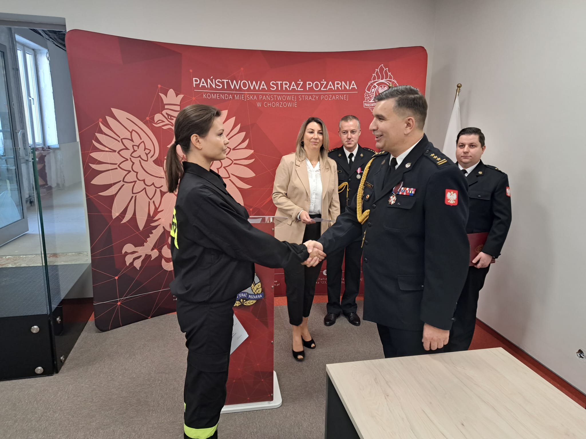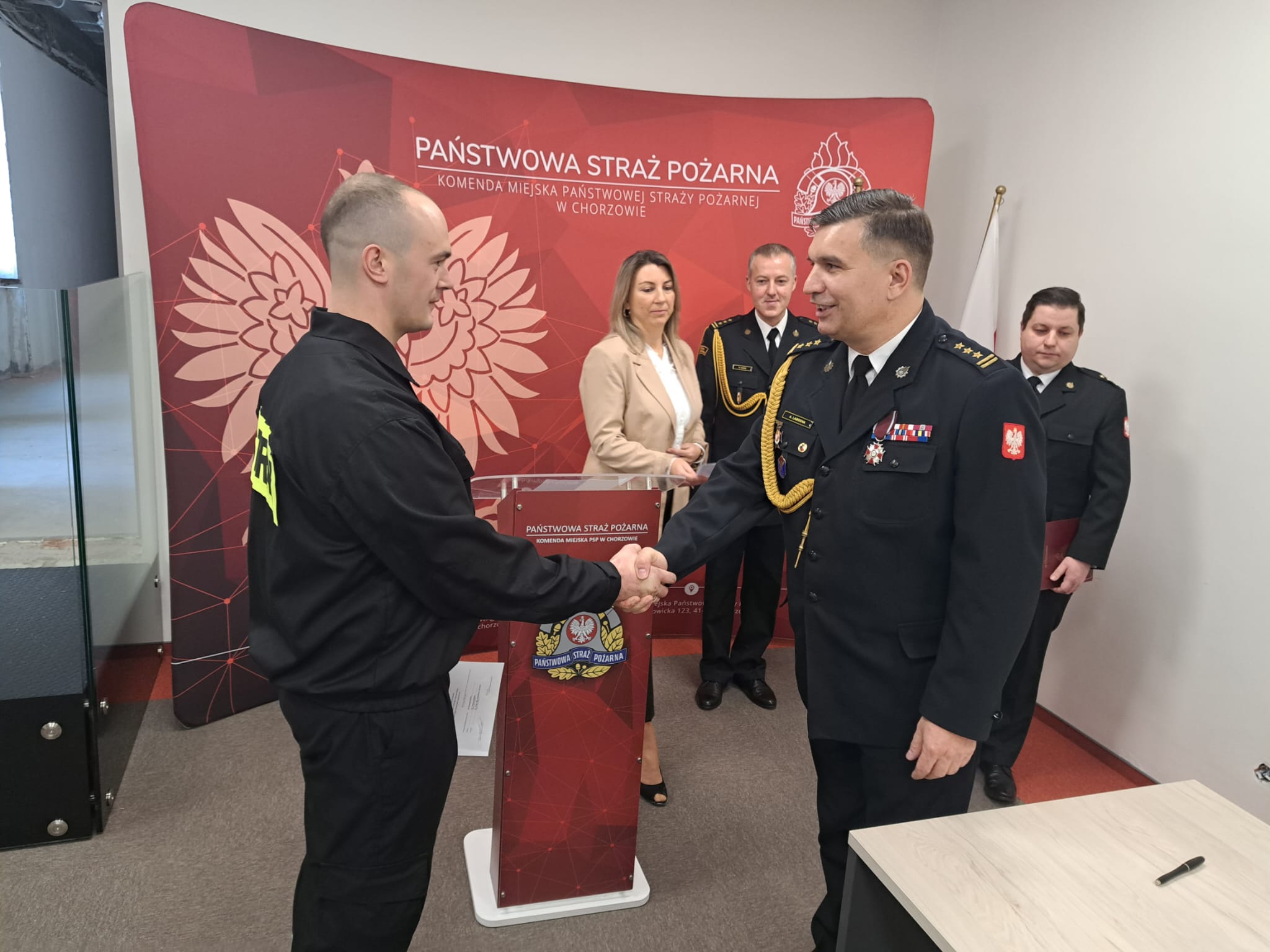 W dniu 30 listopada 2023 roku w Komendzie Miejskiej Państwowej Straży Pożarnej w Chorzowie odbyła się uroczysta zbiórka, w trakcie której zostały wręczone awanse na wyższe stopnie służbowe związane z obchodami Narodowego Święta Niepodległości. Miało miejsce także złożenie ślubowania przez nowo przyjętych funkcjonariuszy, rozpoczynających służbę w Państwowej Straży Pożarnej. Po ślubowaniu nastąpiło podpisanie oraz wręczenie aktów ślubowania.