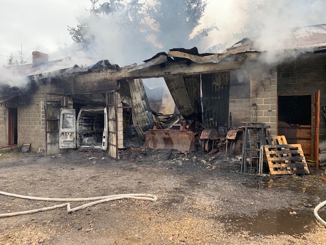 Zastępy zostały zadysponowane do pożaru budynków gospodarczo - warsztatowych.