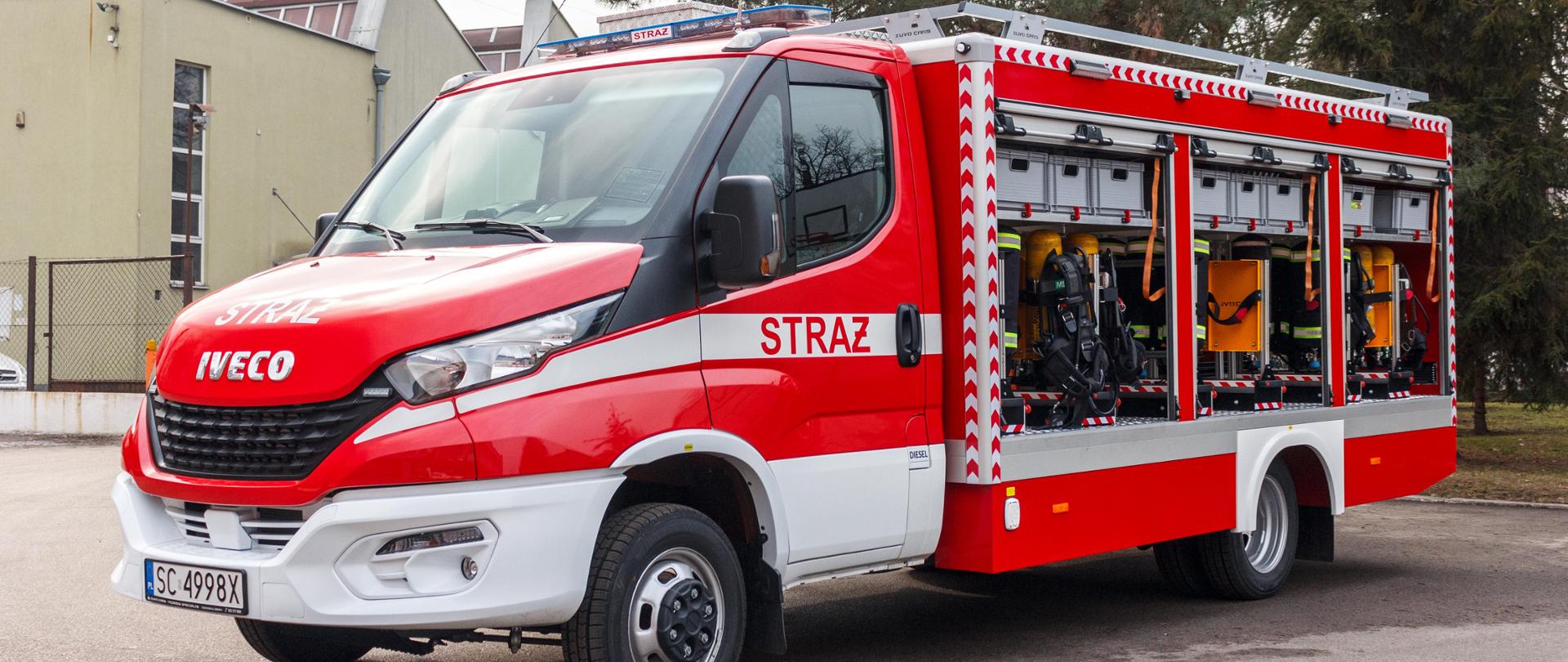 Pojazdem tym jest lekki samochód specjalny ze sprzętem ochrony dróg oddechowych (SLPGaz) zbudowany na podwoziu Iveco Daily 50C18 z napędem 4x2. Podwozie wyposażone zostało w kabinę pozwalającą na przewóz 3 osób w układzie miejsc 1+2. Zabudowa wykonana została przez firmę Iuvo-Cars Jan Świeboda z Częstochowy. Do jej stworzenia użyto materiałów metalowych, aluminiowych oraz kompozytowych. Schowki sprzętowe zostały rozmieszczone w układzie 3+3+1, a ich zewnętrzną osłonę stanowią drzwi żaluzjowe oraz jedna klapa (z tyłu pojazdu). Oświetlenie ostrzegawcze, jak i pola pracy pojazdu zostało wykonane w technologii LED.
