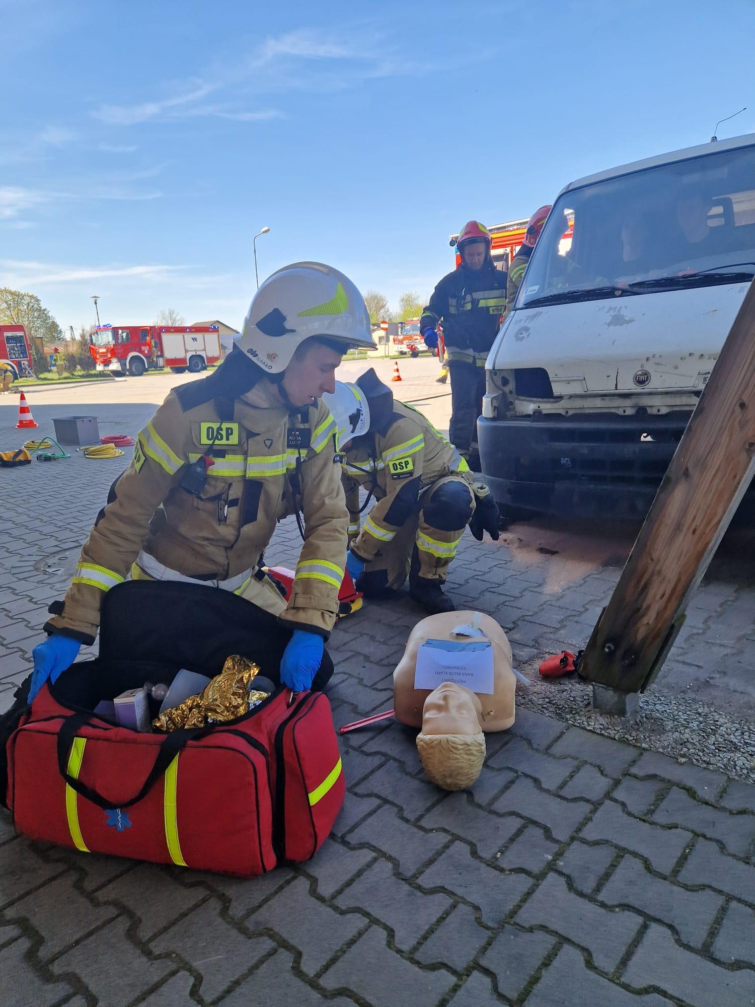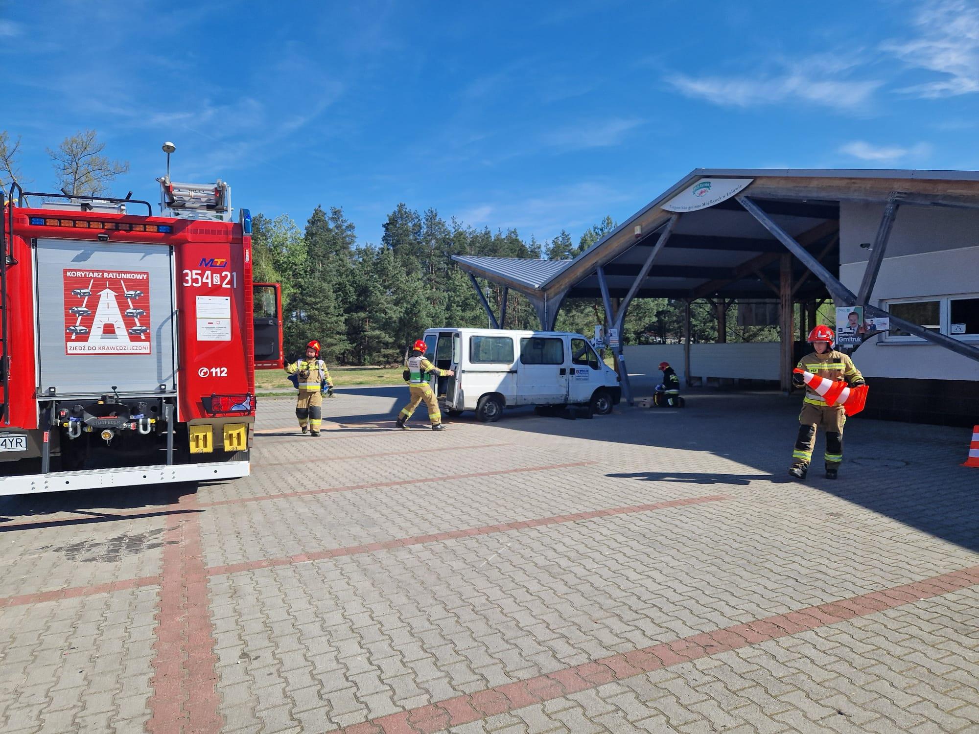 W dniu 9 kwietnia 2024r o godzinie 10.00 Stanowisko Kierowania KM PSP w Częstochowie otrzymało zgłoszenie o wypadku busa na terenie Targowiska Gminnego w Lelowie, w którym poszkodowanych zostało 9 osób. Na szczęście były to ćwiczenia sprawdzające Plan Ratowniczy dla miasta Częstochowa oraz powiatu częstochowskiego. Ćwiczenia miały na celu: