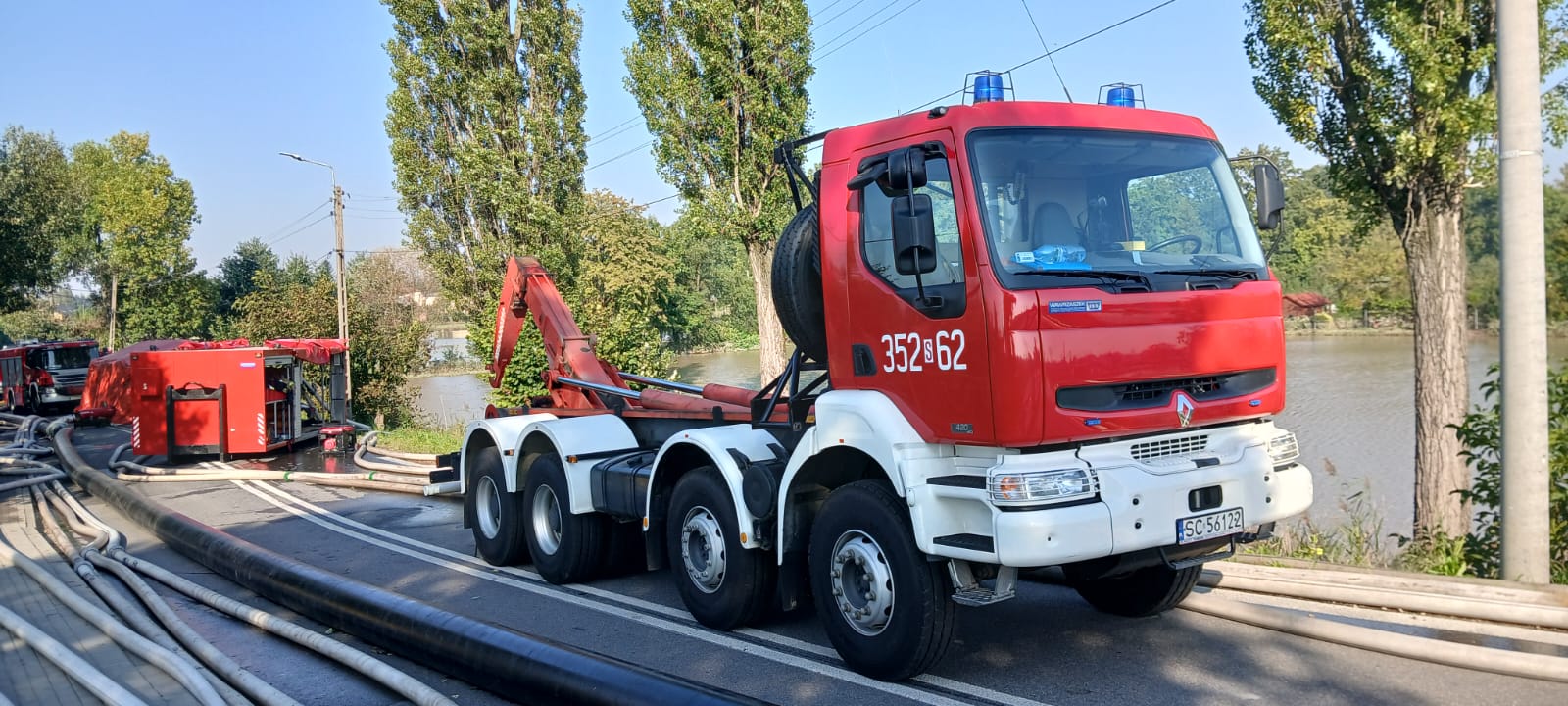W odpowiedzi na katastrofalne w skutkach powodzie na terenie województwa śląskiego, zastęp Komendy Miejskiej Państwowej Straży Pożarnej w Częstochowie wyposażony w kontener przeciwpowodziowy ze specjalistycznym sprzętem do walki z żywiołem został zadysponowany do działań w Czechowicach-Dziedzicach.