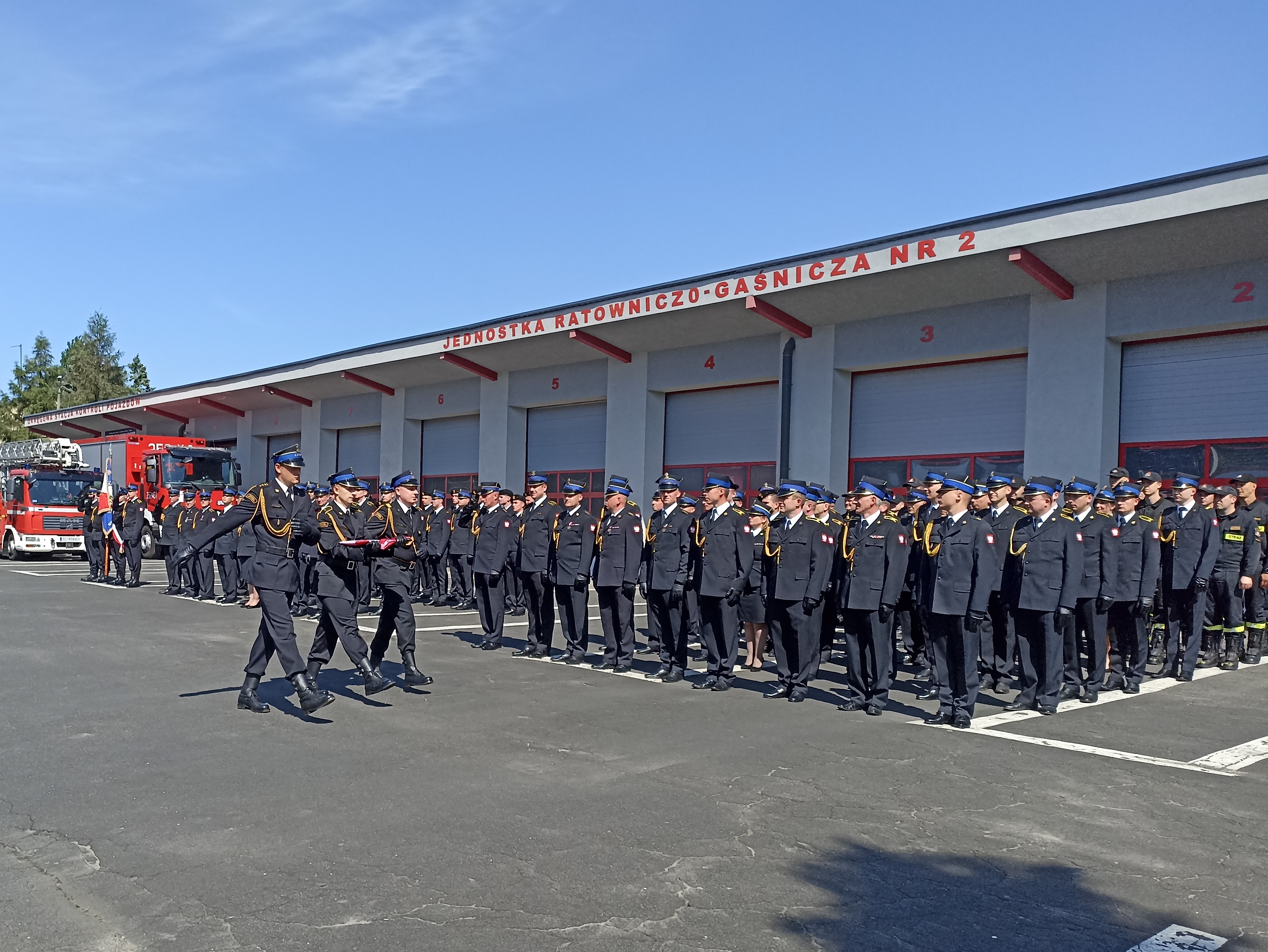 Uroczystości rozpoczęto złożeniem meldunku przez dowódcę uroczystości kpt. Karola Klubę Zastępcy Śląskiego Komendanta Wojewódzkiego PSP bryg. Arkadiuszowi Krzemińskiemu. W dalszej części uroczystości dokonano wprowadzenia Sztandaru Komendy Miejskiej PSP w Częstochowie, po czym nastąpiło podniesienie flagi państwowej i odegranie hymnu państwowego.