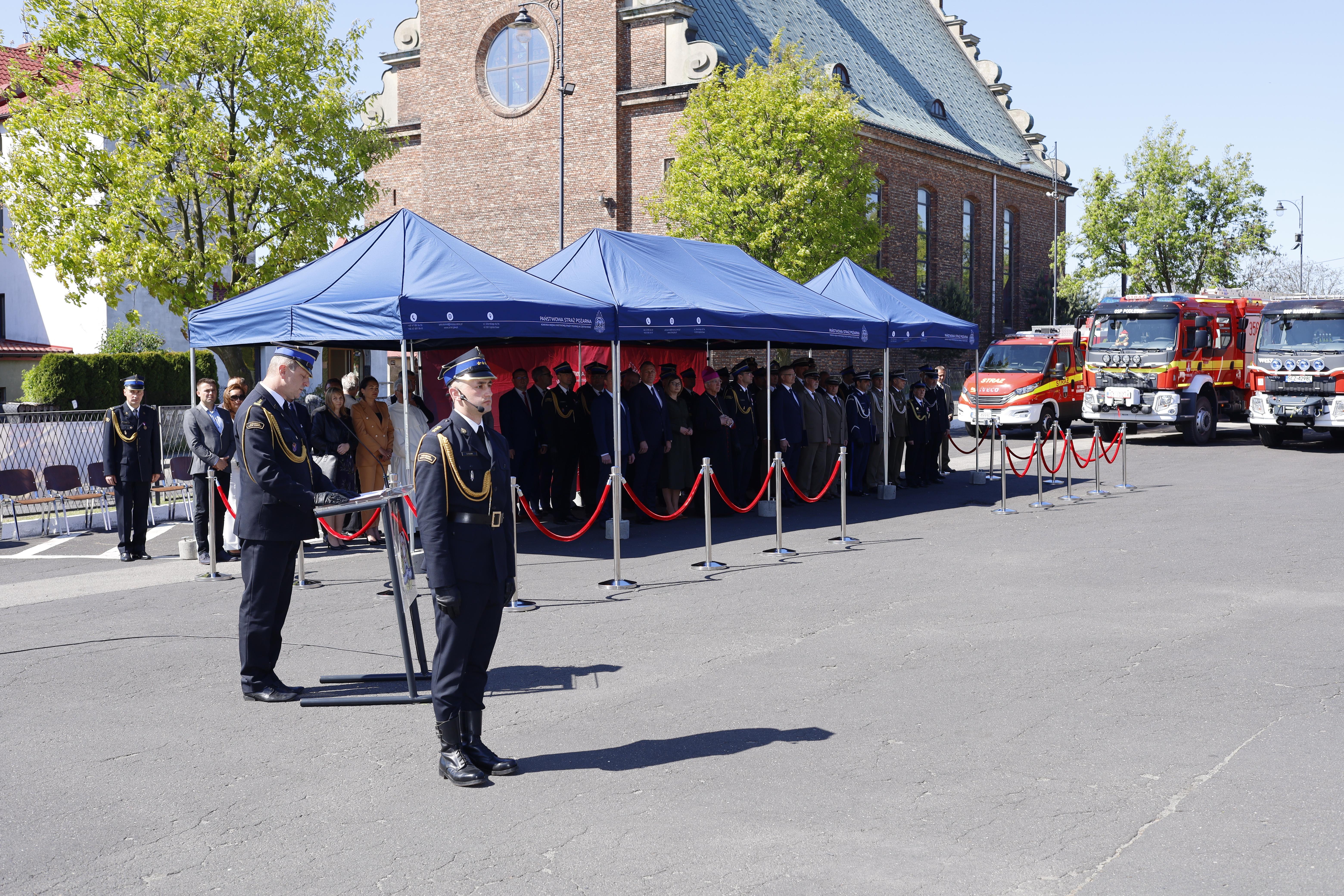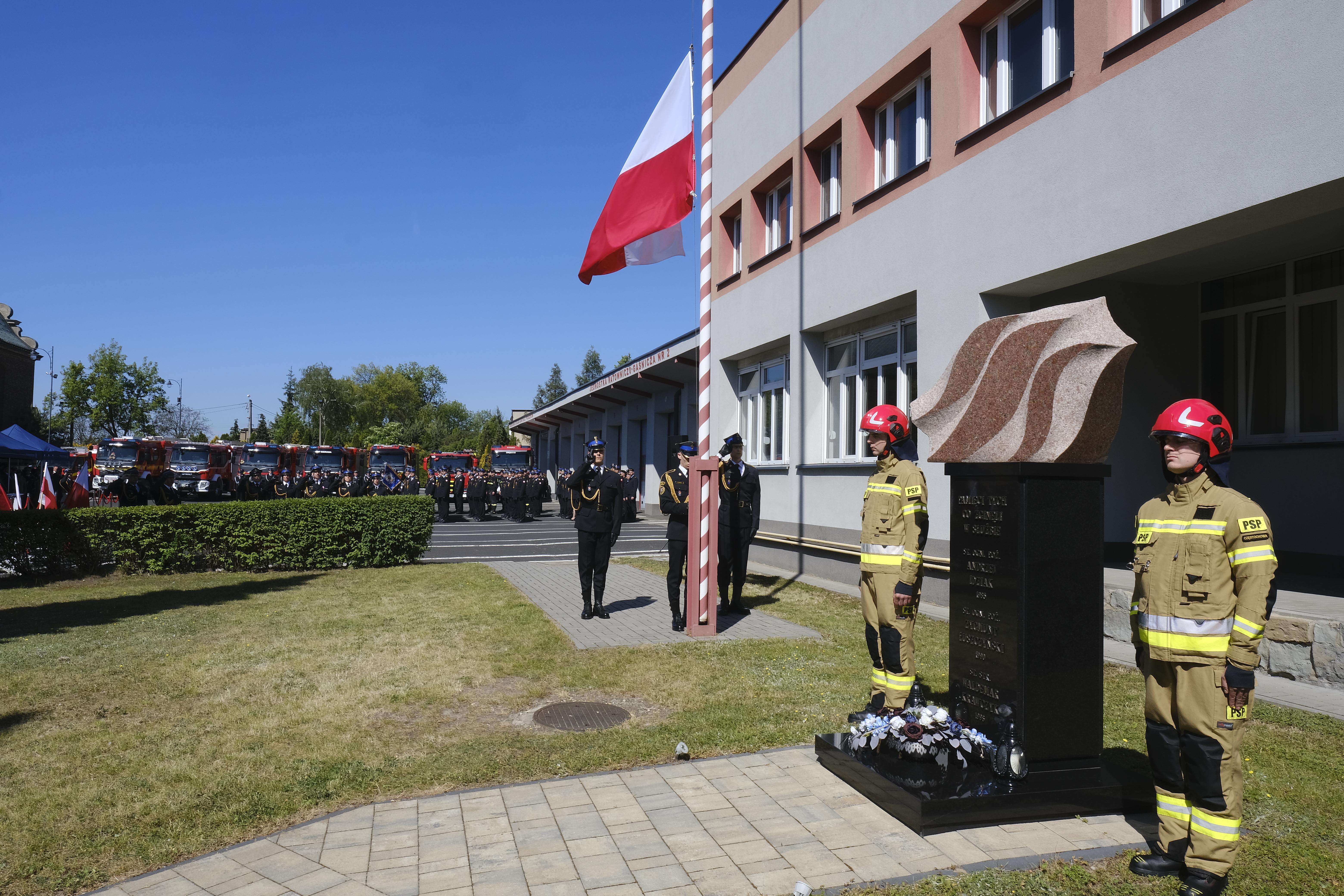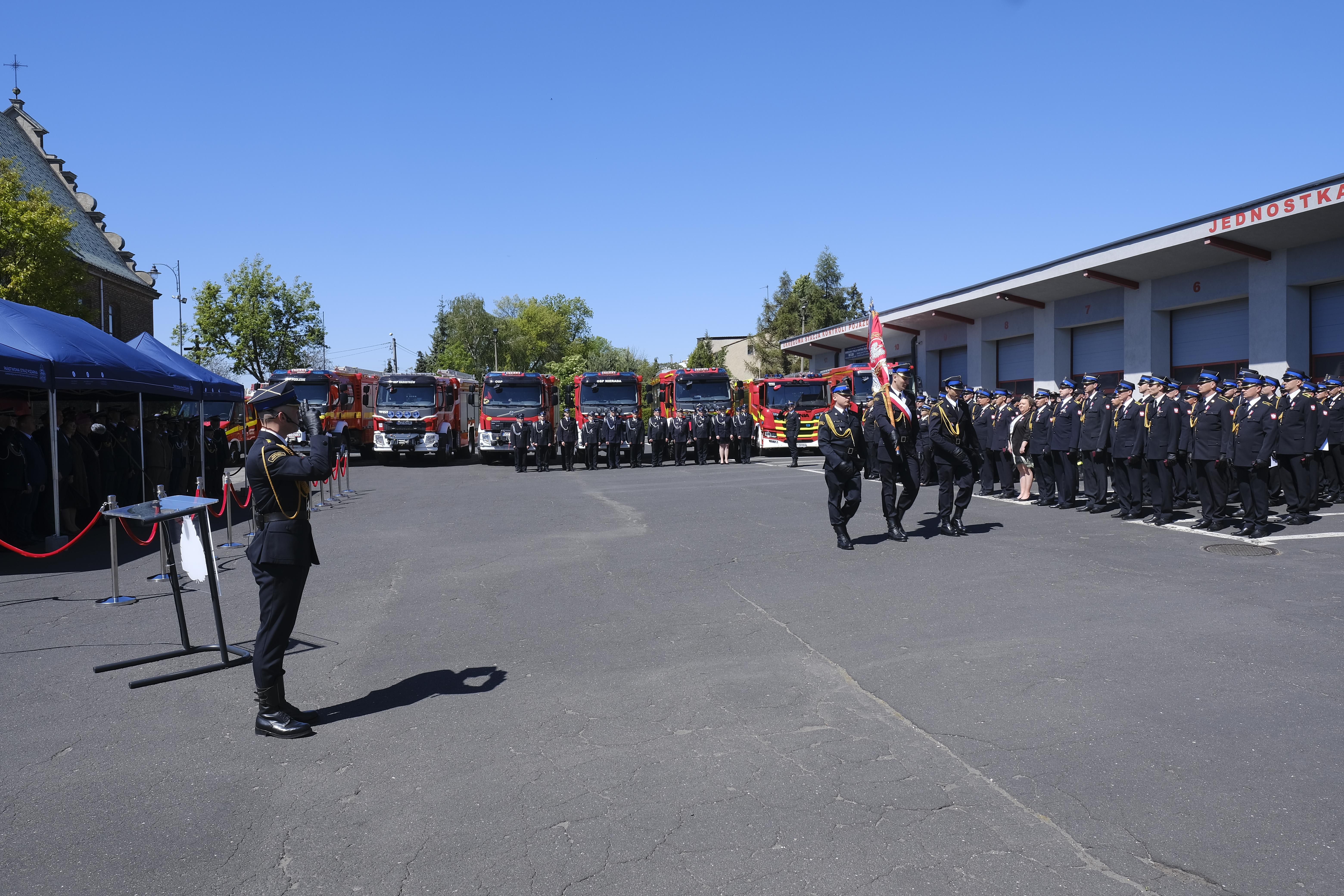 Uroczystości rozpoczęto złożeniem meldunku przez dowódcę uroczystości kpt. Karola Klubę Śląskiemu Komendantowi Wojewódzkiemu PSP st. bryg. Wojciechowi Kruczkowi. W dalszej części uroczystości nastąpiło uroczyste podniesienie flagi państwowej i odegranie hymnu państwowego oraz uczczenie minutą ciszy strażaków, którzy odeszli na wieczną służbę poświęcając swoje zdrowie i życie dla ratowania drugiego człowieka. Nie zapomniano również o górnikach, którz ponieśli śmierć w ostatnich dniach w kopalni węgla KWK Mysłowice Wesoła.