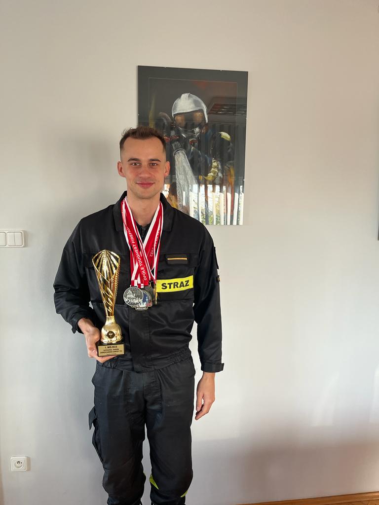 Nasz strażak w pierwszych sowich zawodach uzyskał czas 2:28,51, a aktualny rekord wynosi 1:47,34. Zawody w jakich uczestniczył: